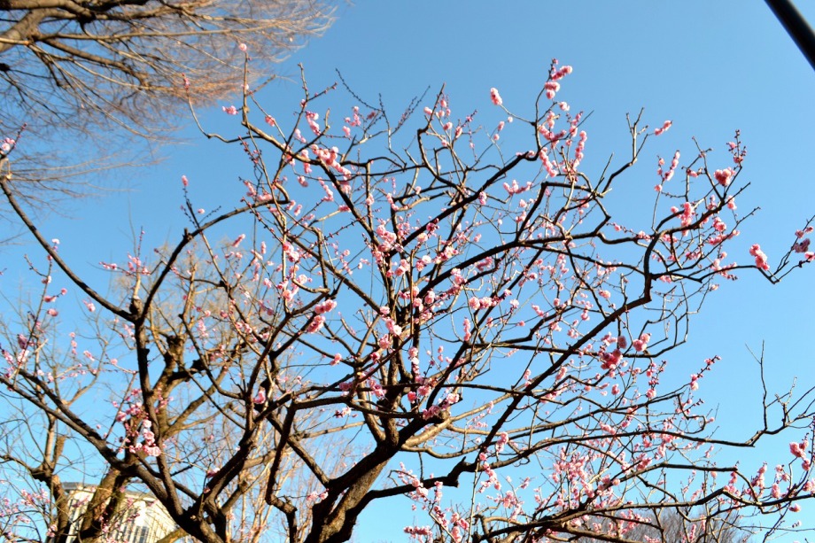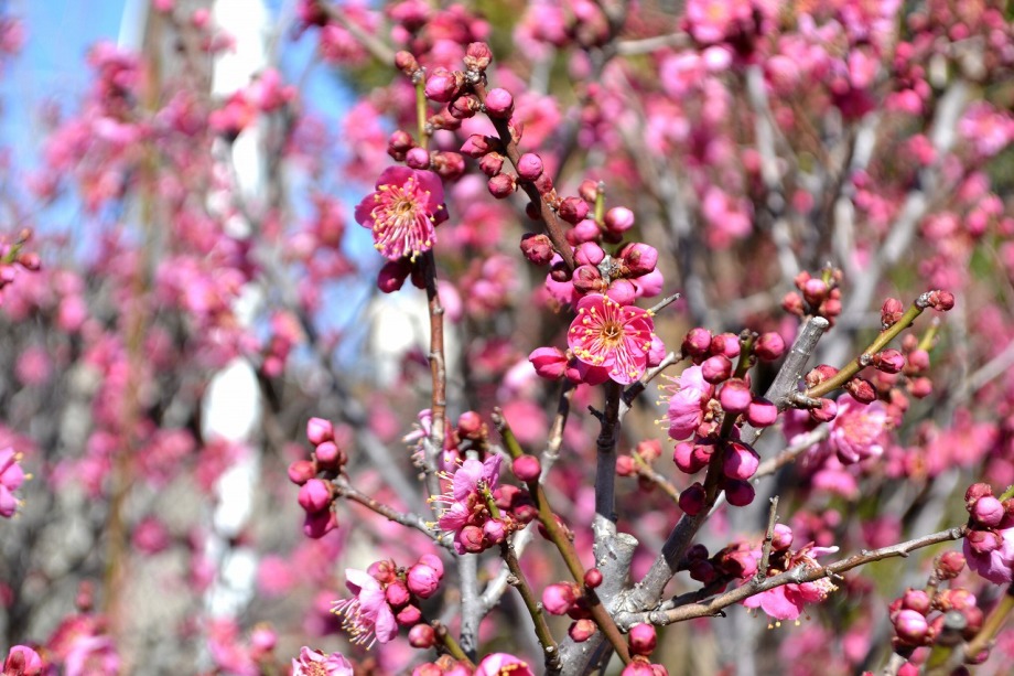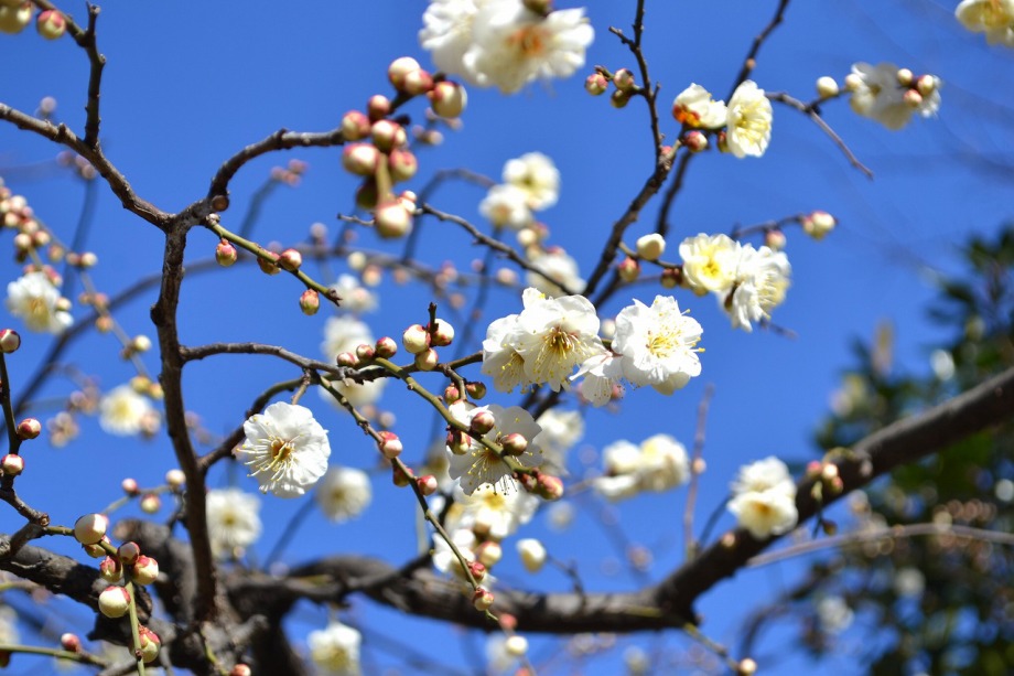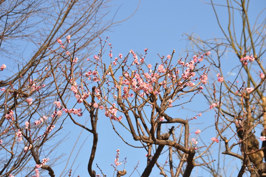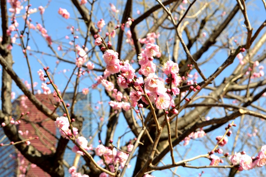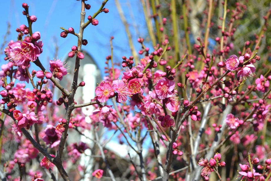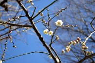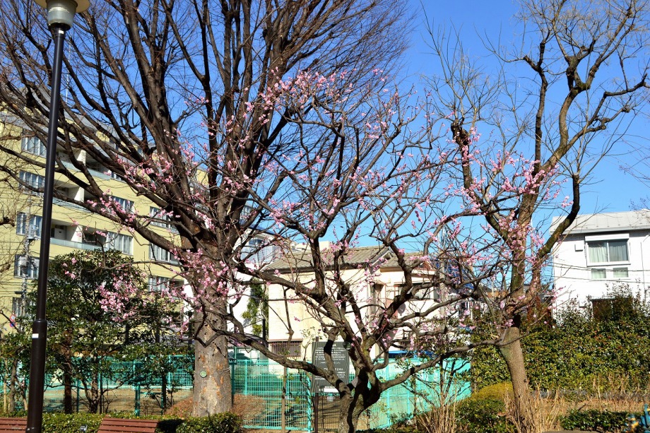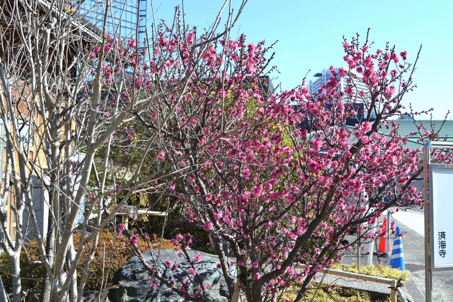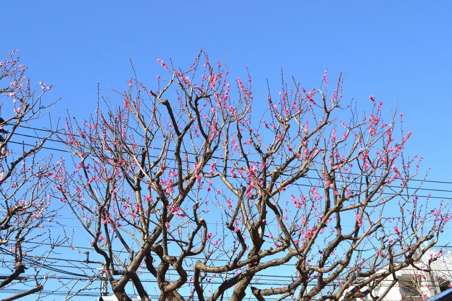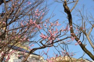 「一言」昔フランス公使館があった済海寺の紅梅が見頃になっています。横に黄色い花がたくさん咲いています。三田台遊園の 紅梅もかなり花が増えてきました。白梅も咲き出しました。柿の実にはたくさん鳥が来て柿の実を啄むので哀れな感じに なっています。