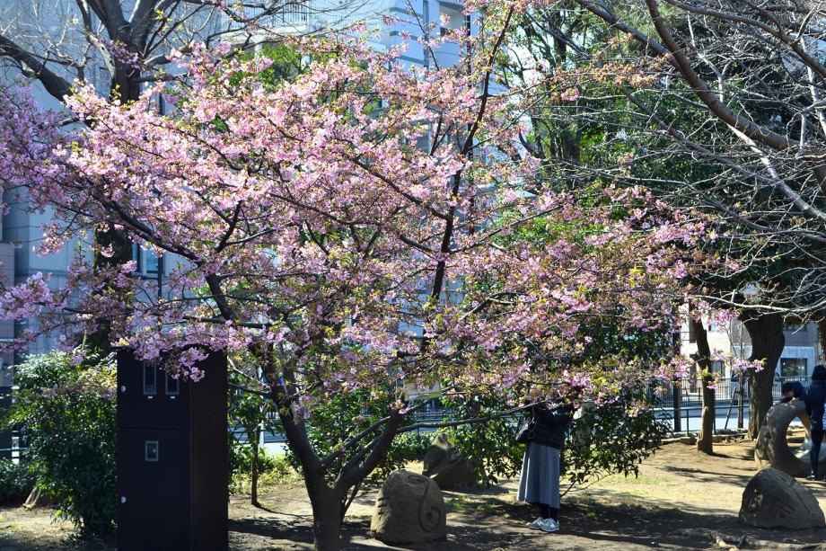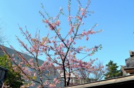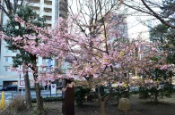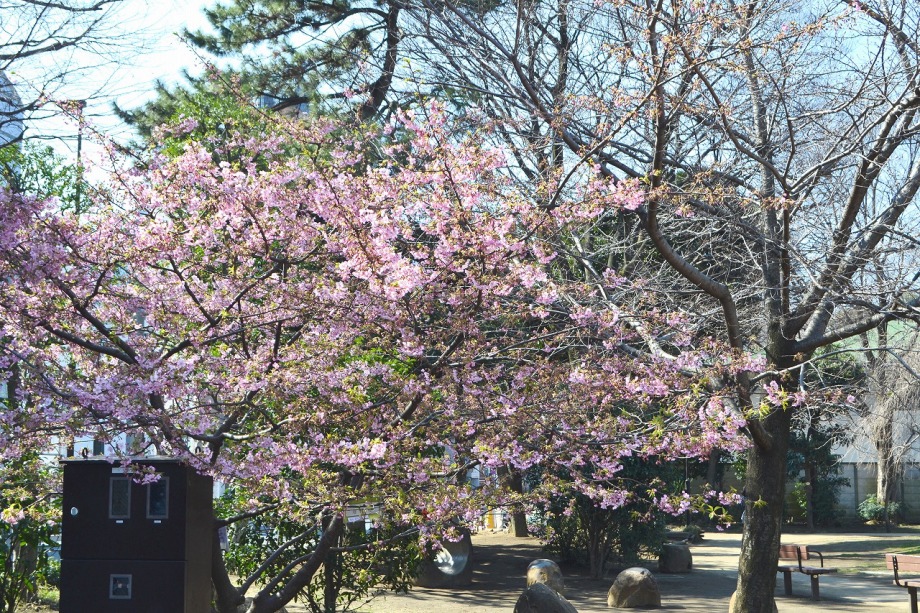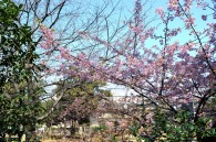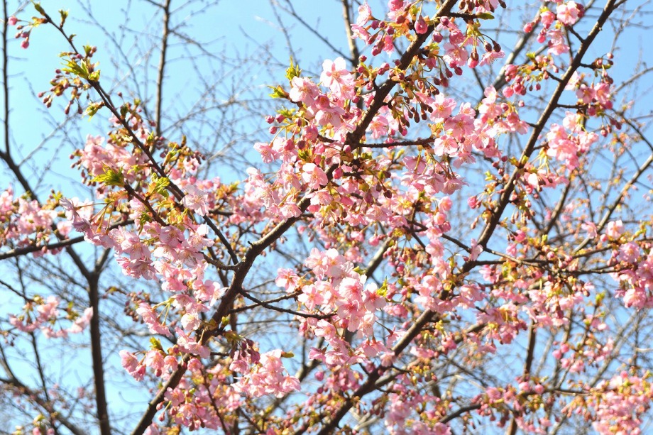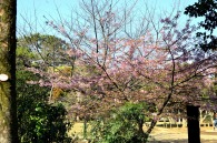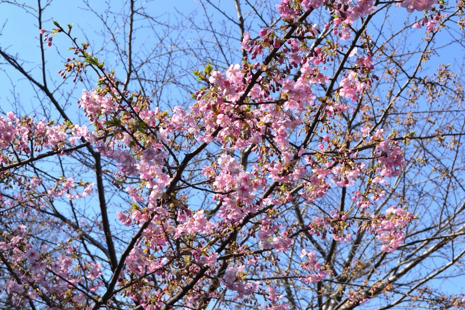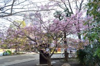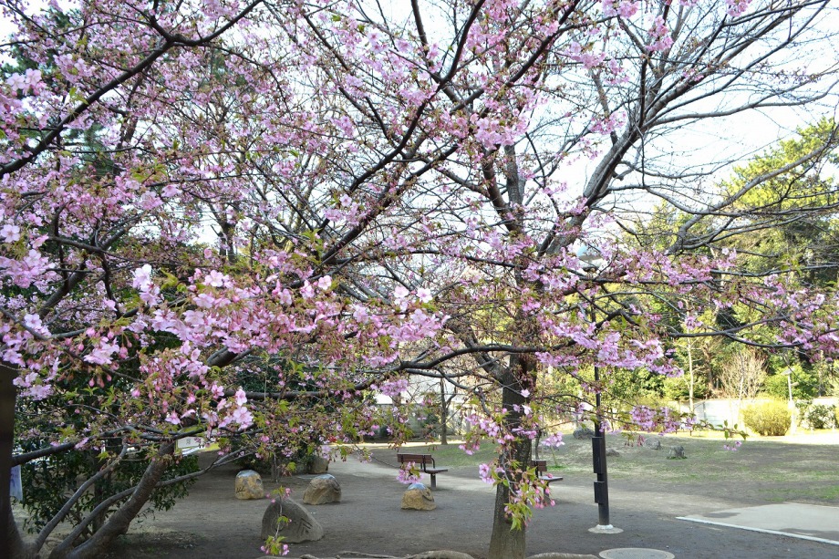 「一言」どんぐり公園の河津桜が見頃になってきました。児童遊園の入り口に大きな木の河津桜があり、多くの人が写真を撮っていました。 河津桜の近くには昨年に熊本市から送られた椿も咲いていました。覚林寺の河津桜も咲いていました。境内から河津桜の花の写真 を撮ると日陰になり綺麗な花の色は出ません。お寺の塀の外から写真を撮ると河津桜の花が太陽の光を反射して鮮やかに見えました。