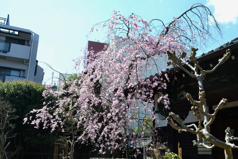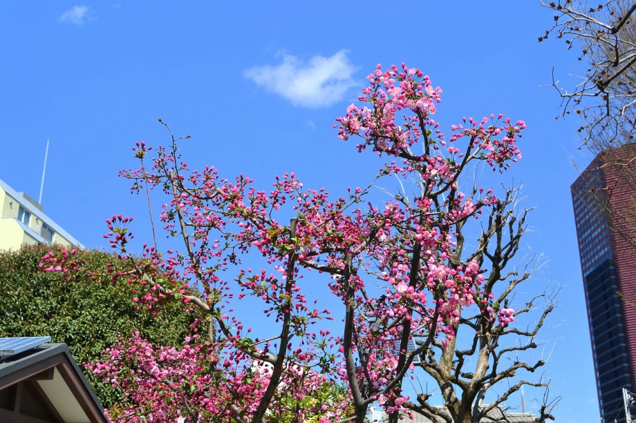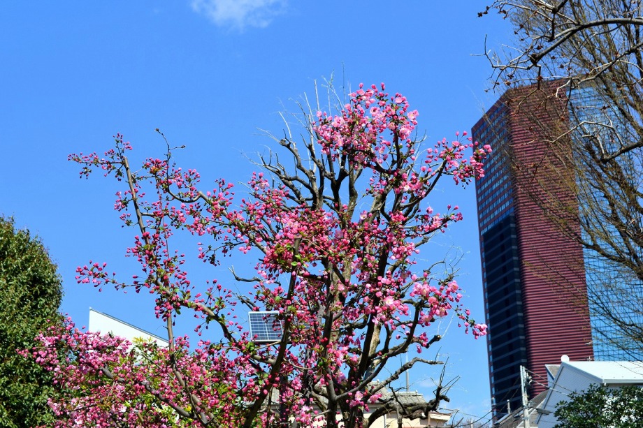 「一言」亀塚公園には大きなソメイヨシノの他に、港区政70周年記念事業として鉾田市から寄贈された桜が植えられていて咲いていました。 三田台児童遊園にはハナカイドウが咲き出しています。木は大きくありませんが花はたくさんついていました。薬王寺には大きなしだれ の桜が見頃です。三田4丁目の交差点の近くには路地に山桜が満開です。春日神社の桜も咲き出しました。