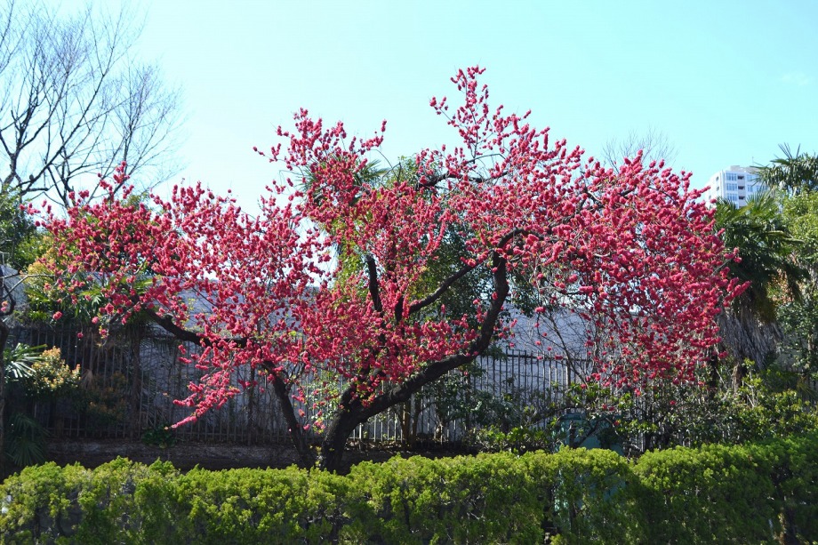 「一言」どんぐり児童遊園のしだれ桜が見頃になりました。ユキヤナギも盛りと咲いています。自然教育園の正面前の桜も咲き始めました。 医科学研究所のハナモモも咲き出しました。ソメイヨシノも咲き出して、一部では見頃になりました。高輪公園のコブシも咲き出しました。 高輪プリンスホテルの庭には真っ赤な桃の花があちこちに咲いています。華やかな感じがします。
