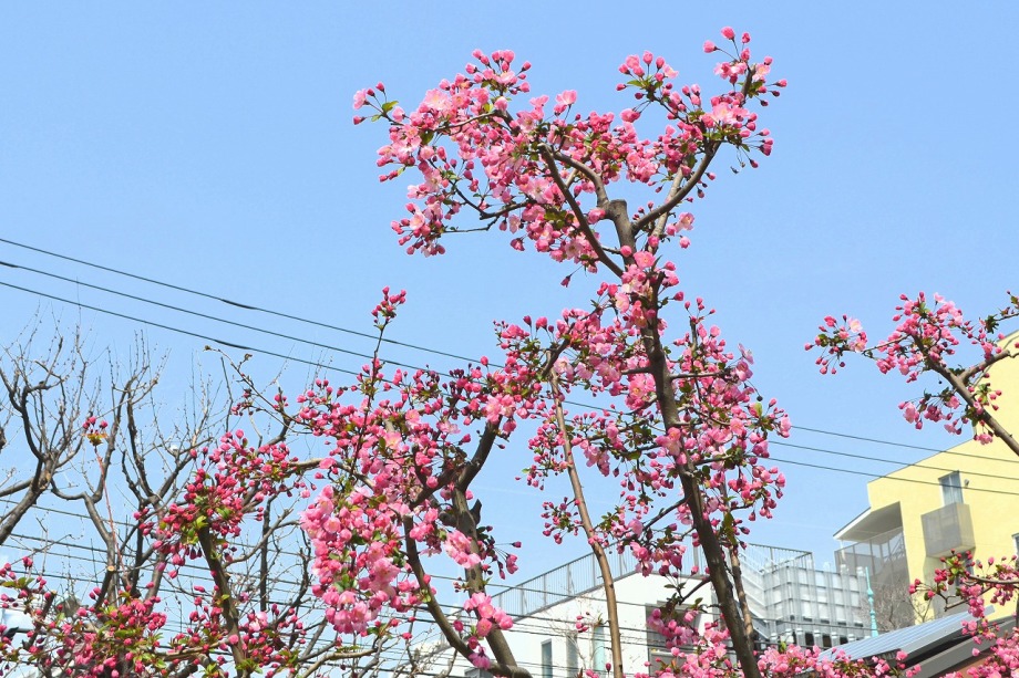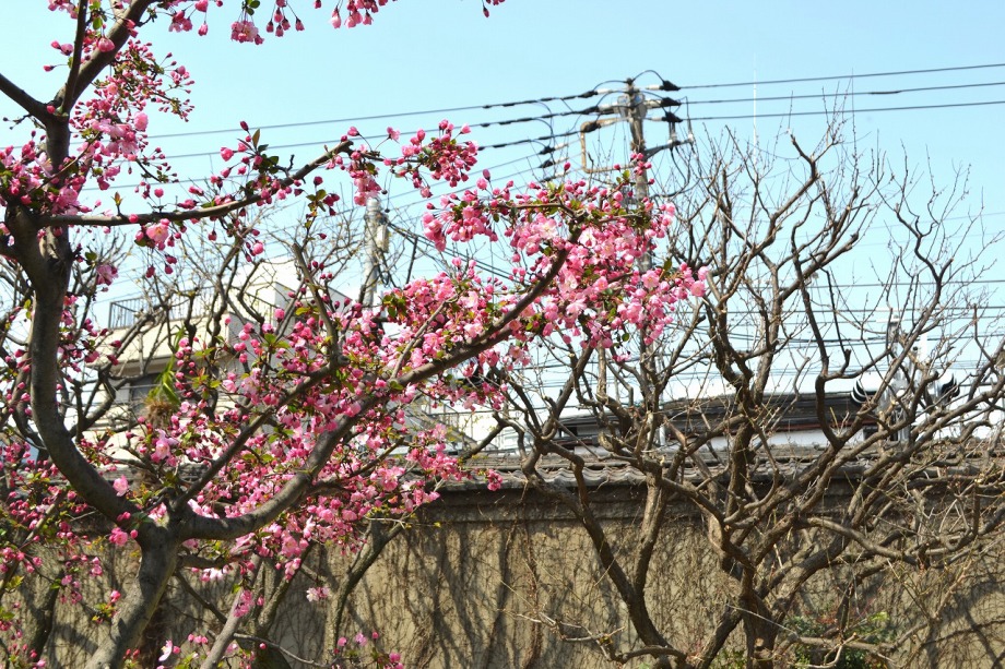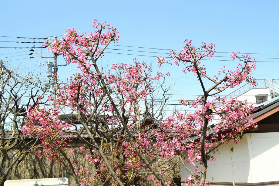 枝に花が一杯咲き見事です。ピンクの色が綺麗なのでニコンの他にソニーのカメラで撮りましたら大きく違った感じになりました。