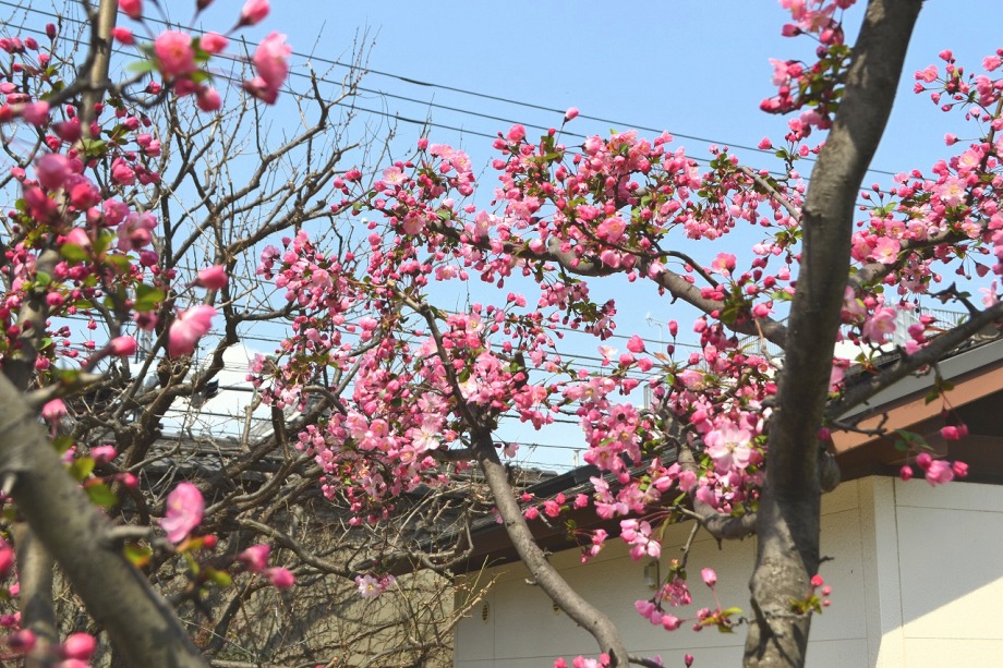 「一言」三田台児童遊園のハナカイドウがだんだん咲いていました。薬王寺にはモモが咲き出しました。しだれ桜は長く垂れ下がった