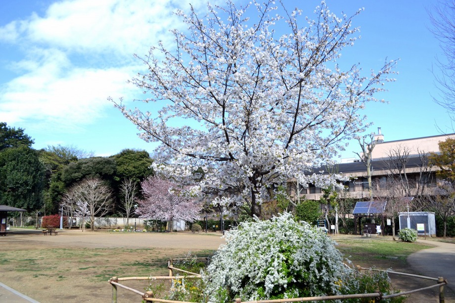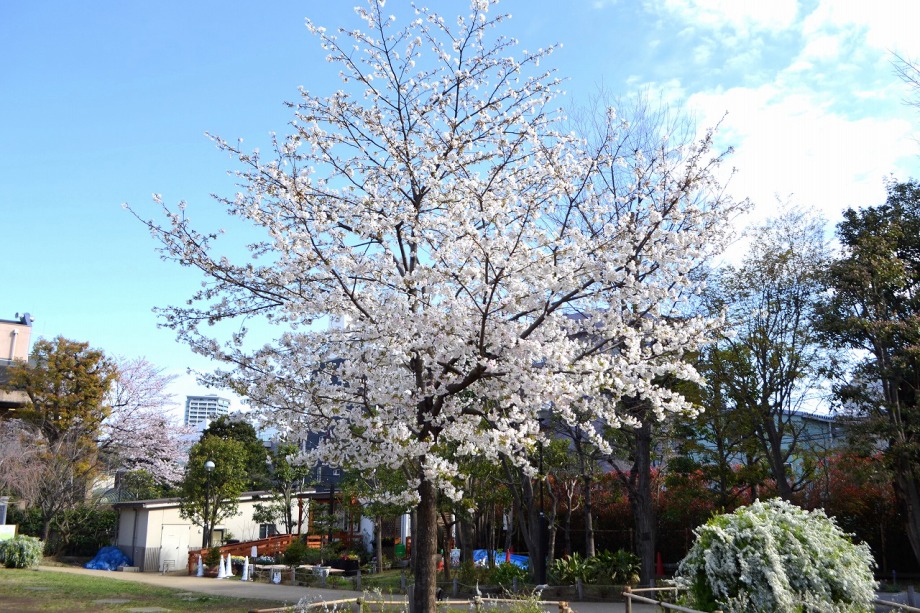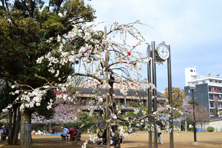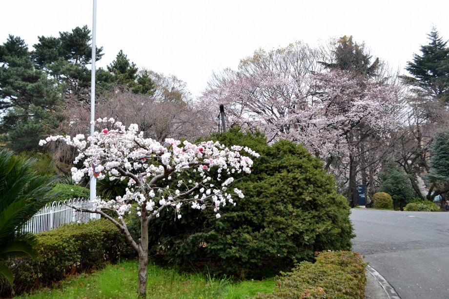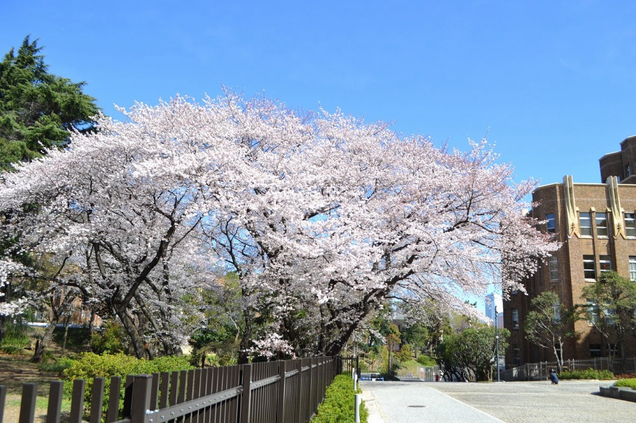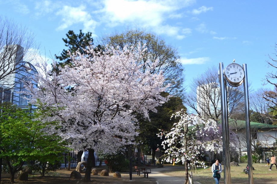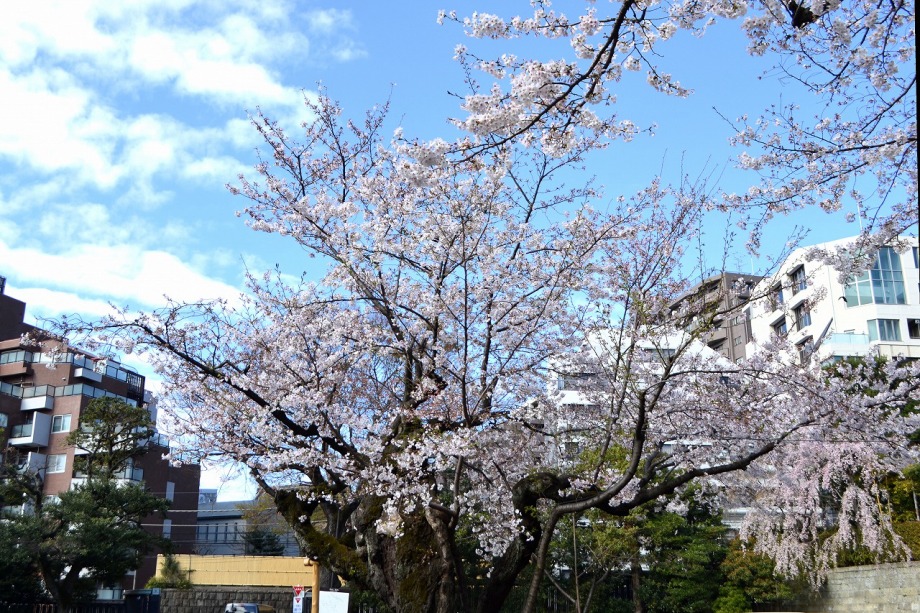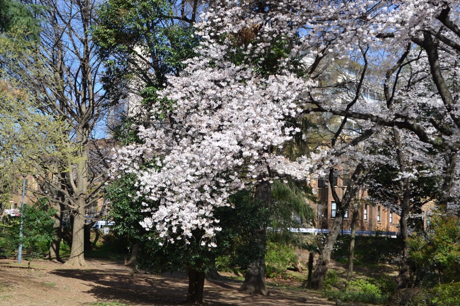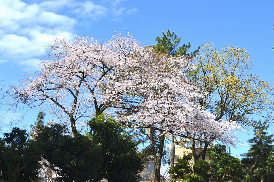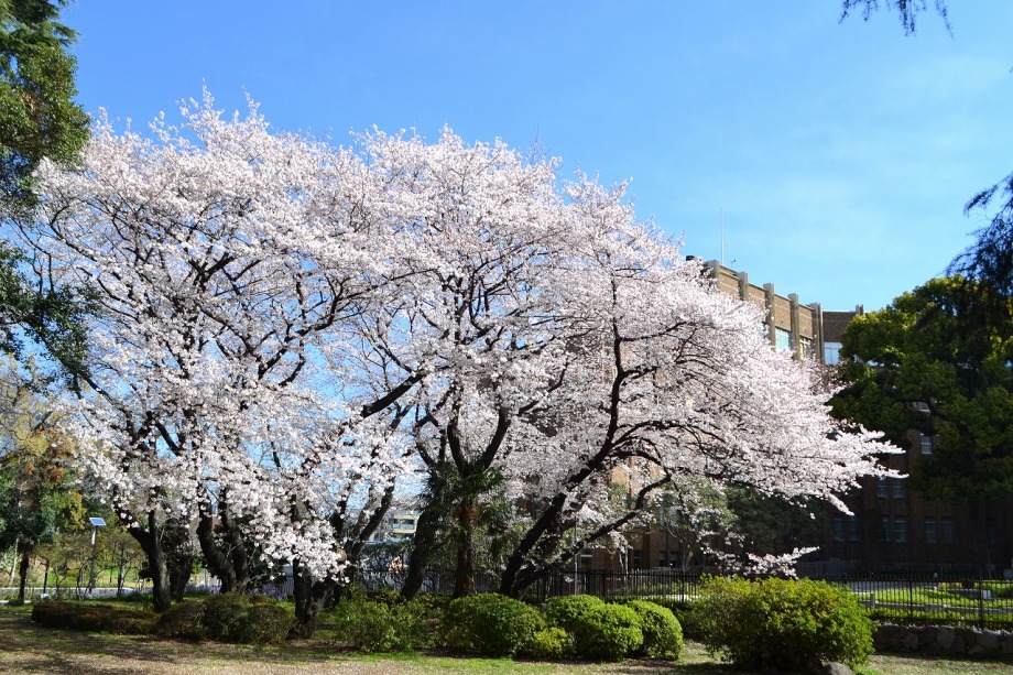 「一言」どんぐり児童遊園ではしだれの桜もまだ咲いていますが、ソメイヨシノも咲き出しました。八芳園でも桜が咲き、庭園が綺麗になりました。 東京大学の医科学研究所には大きなソメイヨシノが咲き出し綺麗です。椿の木には真っ赤な花がたくさん咲いています。ハナモモの綺麗です。 また、雰囲気が良かったので、医科研の大きな桜とゆかしの杜を一緒に写真を撮ってみました。