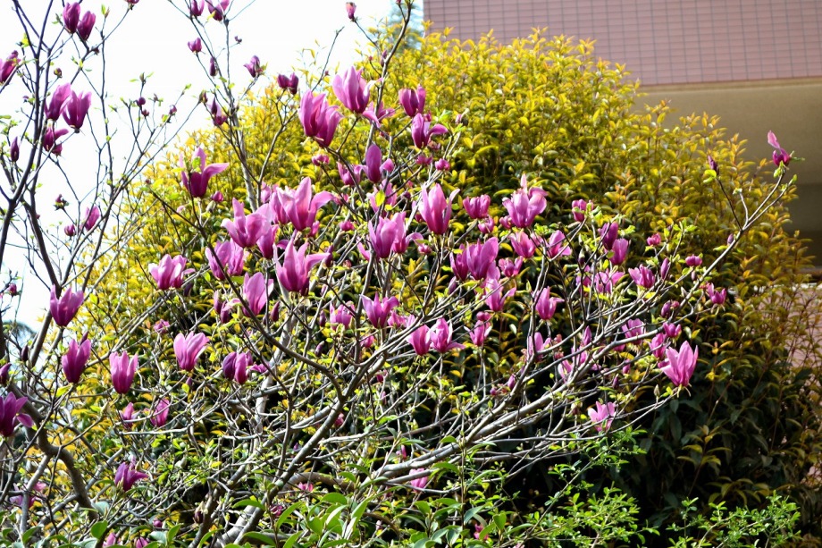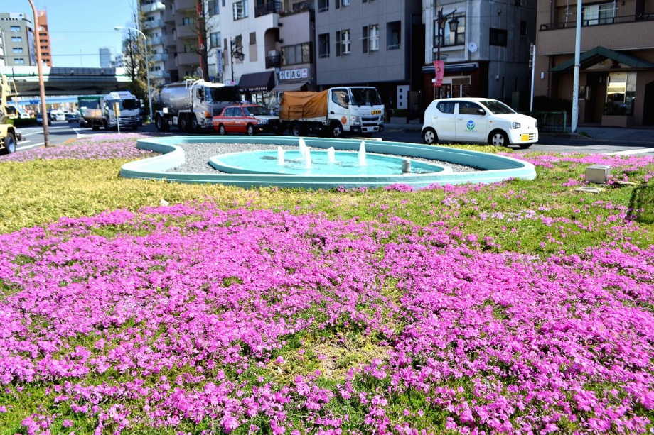 、 「一言」魚らん坂下の交差点に芝桜が咲き出しました。高野山東京別院の桜も見頃になっています。泉岳寺の桜も満開で華やかです。 柴木蓮も咲き出しました・證誠寺のしだれ桜も見頃です。高松中学校やこの地域の桜も見頃で町内会の花見を行っていました。