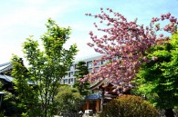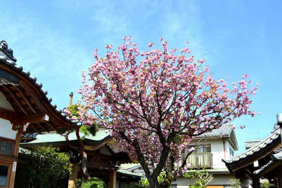 「一言」玉鳳寺の八重桜が満開になり、見頃になっています。庭にはあやめも咲いています。龍源寺のシャクナゲや牡丹もたくさん咲いて綺麗です。 證誠寺には桐の花が咲いています。八重桜も満開で本堂や梵鐘を背景に写真が撮れます。牡丹の花も咲いています。