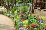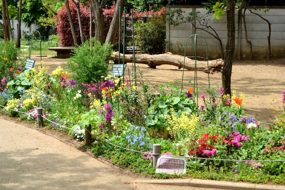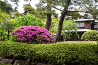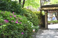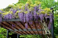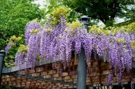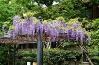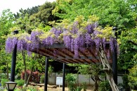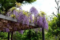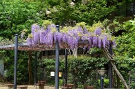 「一言」藤の花が咲いていて、花の房も長く伸びていて綺麗でした。八重桜や花水木も咲いていました。庭園にはチューリップなど色々な花が咲いていて