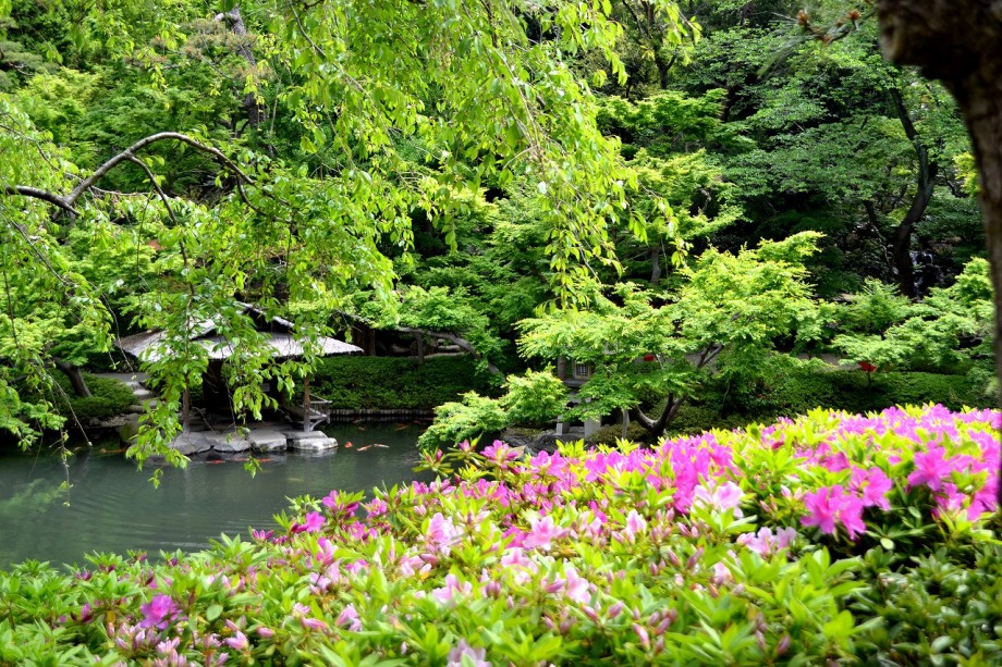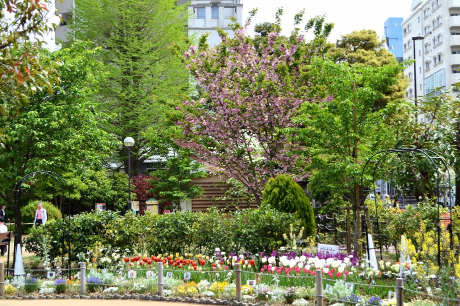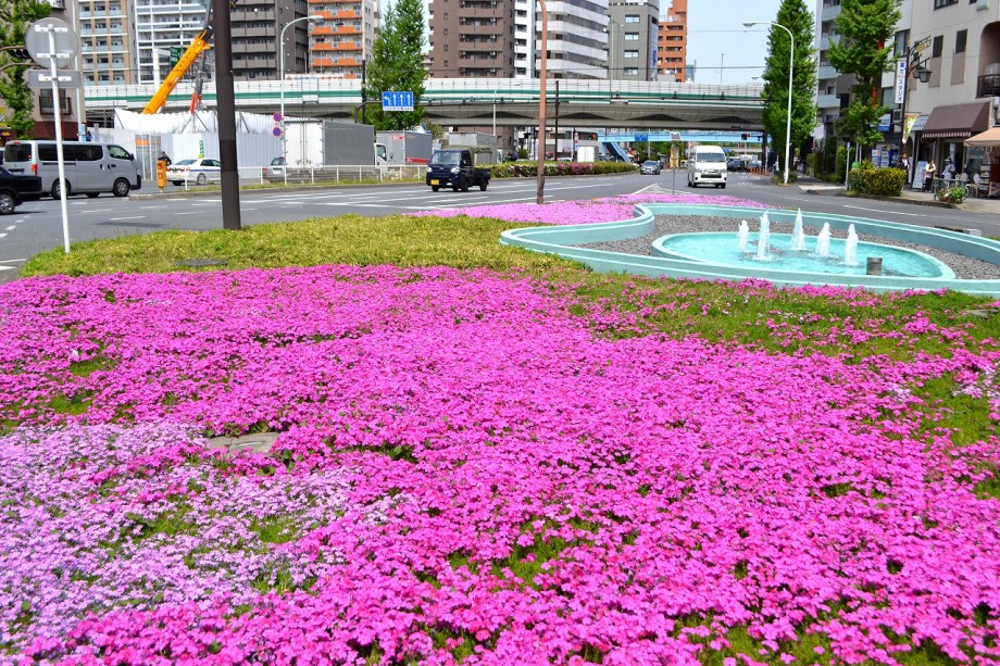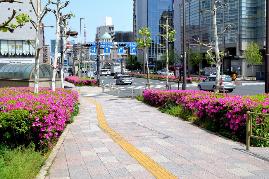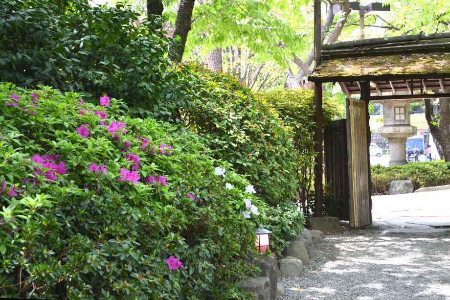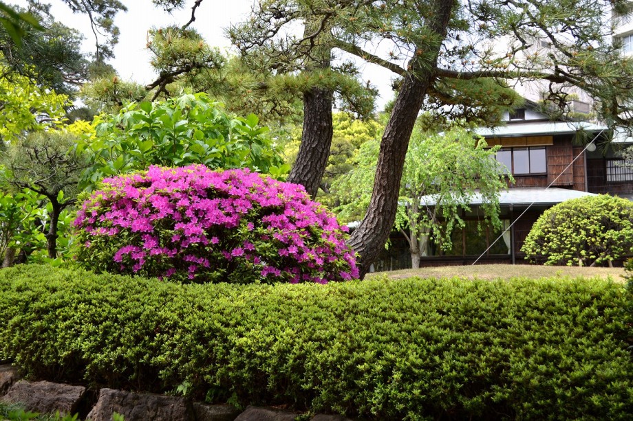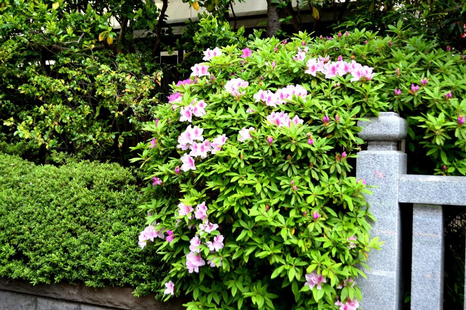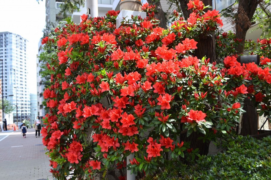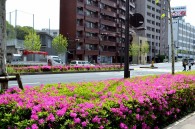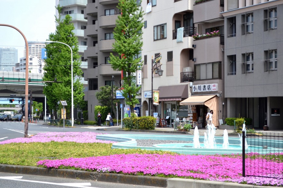 見ていて飽きませんでした。プラチナ通りの並木や東大の医科研の入り口の大きな木も新緑で綺麗になっています。八芳園には八重桜が咲き、 ツツジが咲き出していました。もう少ししたら庭園のツツジが満開になりそうです。目黒通りには花水木の花が見頃になり、道路沿いの並木が良い 雰囲気になりました。