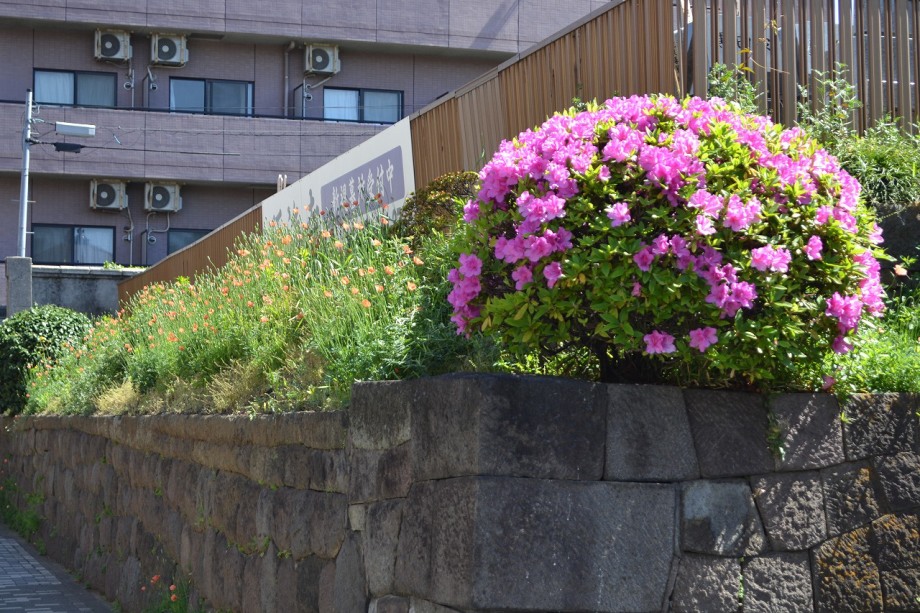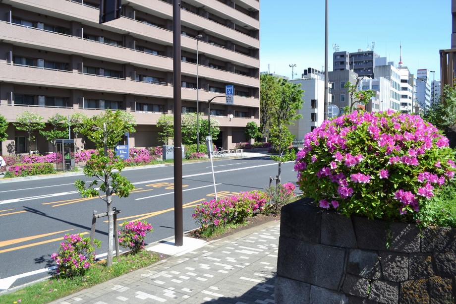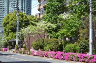 「一言」札ノ辻の近くにある住友不動産ビルの庭に植えられている芝桜が満開です。先日手入れをしていたので今年は綺麗です。願海寺には藤の花が、 薬王寺にはハナミズキが咲いています。高輪1丁目の通りにはツツジが咲き綺麗です。先日植えられたプリンセスミチコのバラも咲き出しました。 證誠寺には黄色いボタンの花が見頃になりました。保安寺の階段沿いのツツジも咲いています。