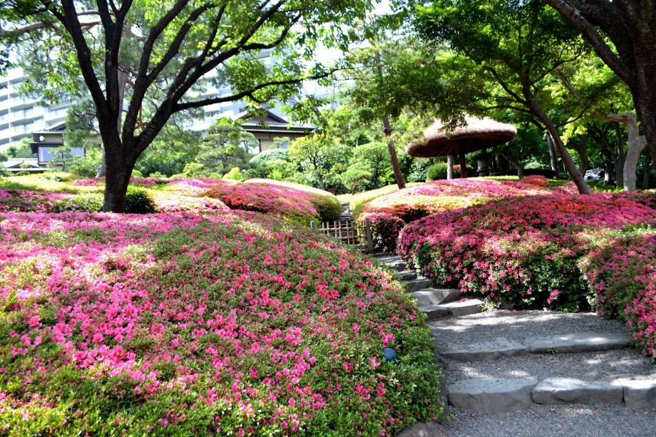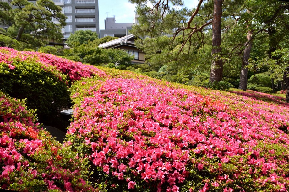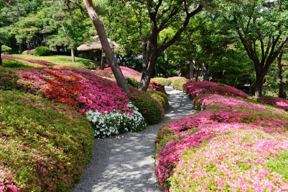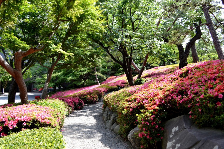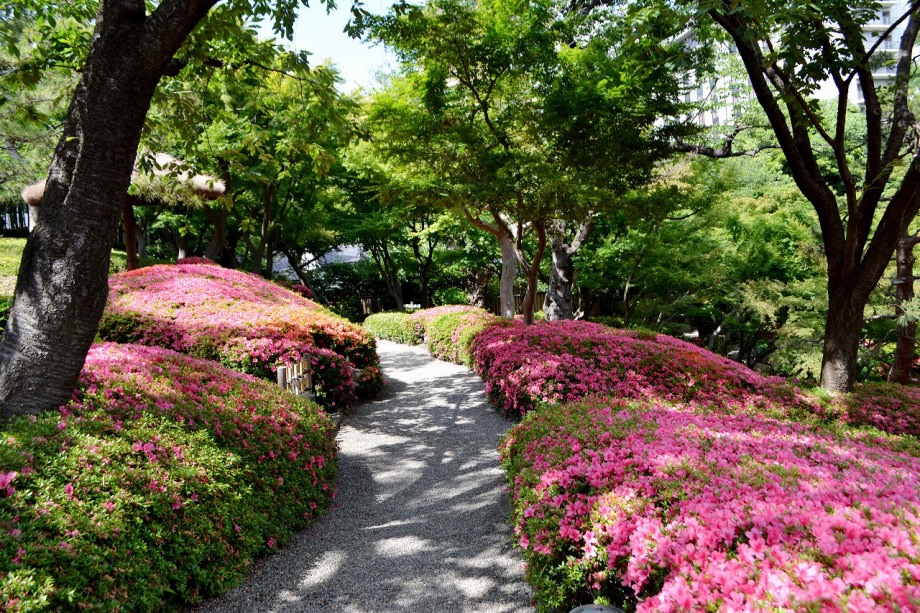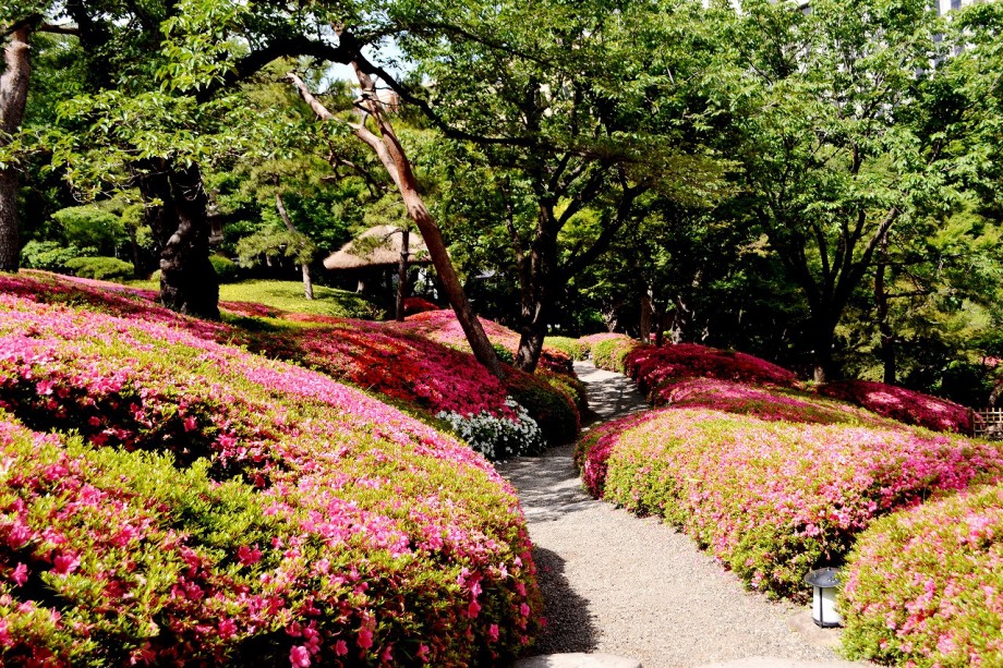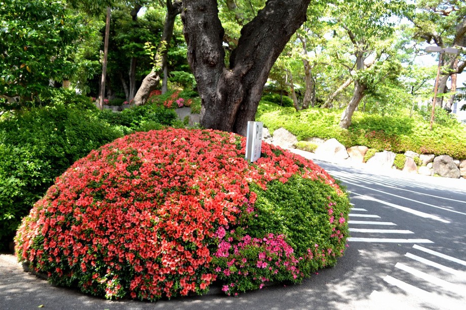 「一言」先日、八芳園に行った時、サツキが綺麗だったので写真を撮りましたが、天気が良過ぎて、サツキの綺麗な色が出ない感じがしたので 曇りの日にもう一度写真を撮りに行きました。写真を取り出すと天気が良くなりましたが、先日より鮮やかな色が出るもう一度写真を撮りました。