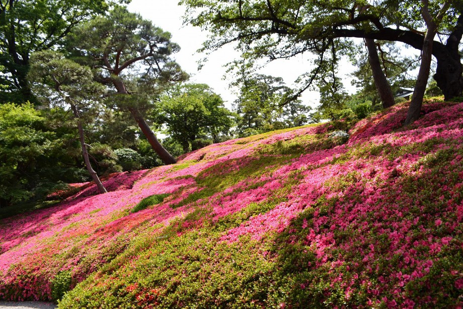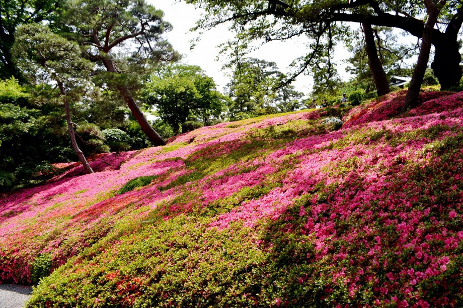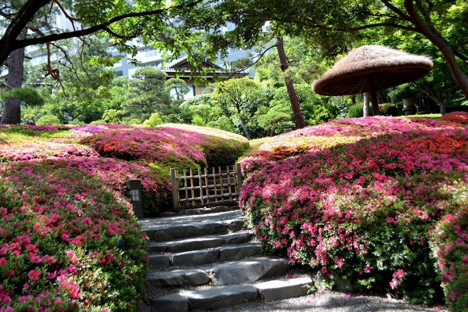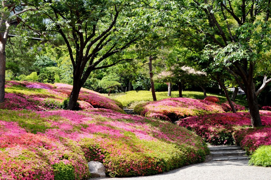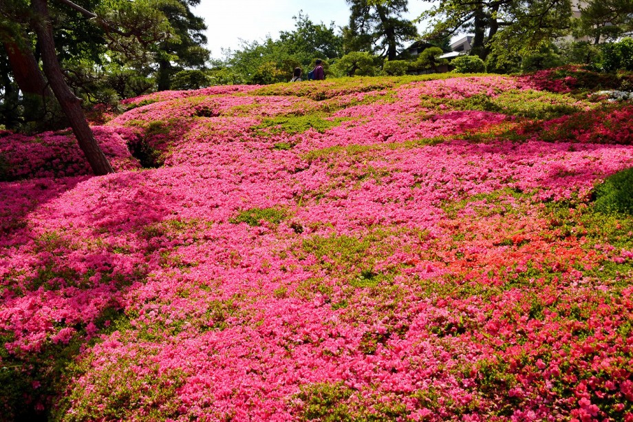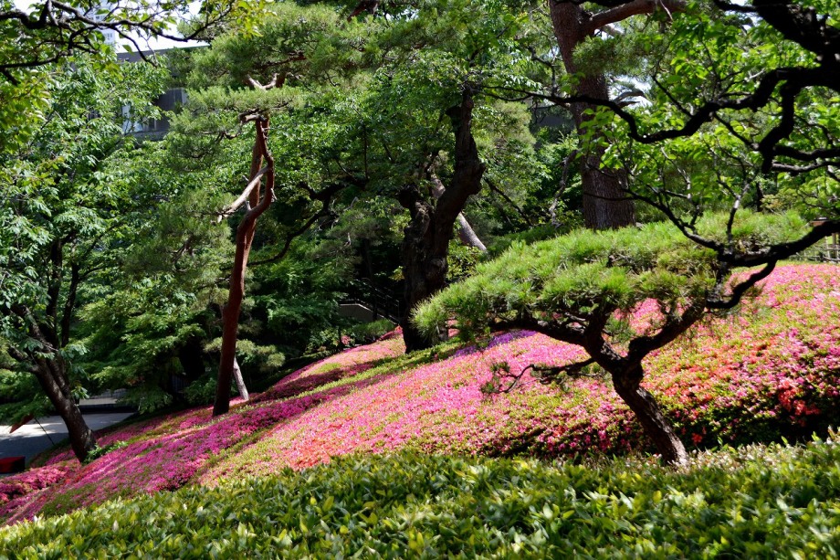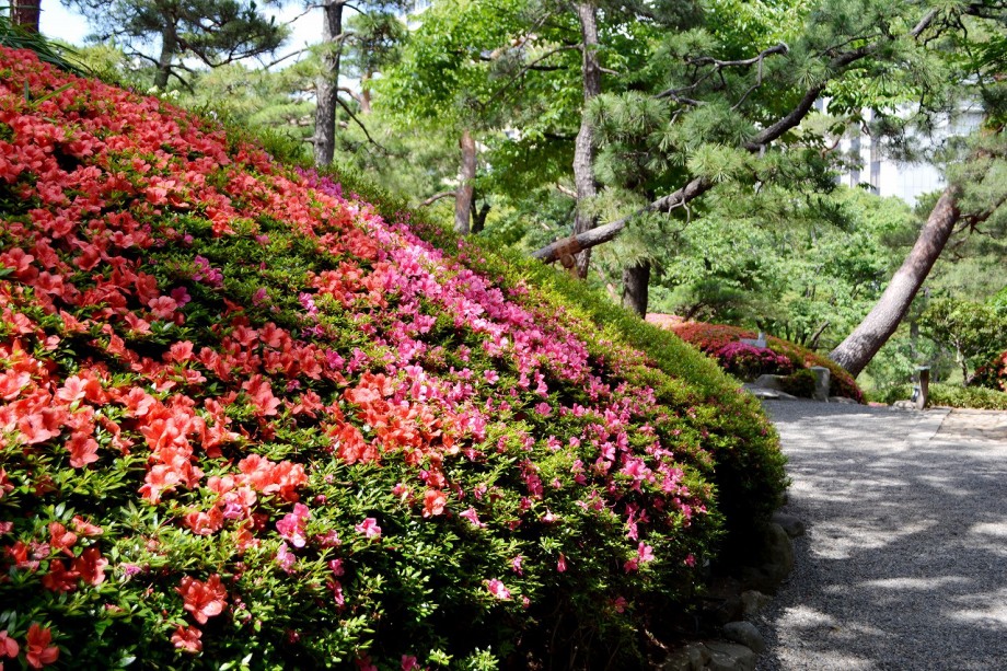 「一言」先日、八芳園に行った時、サツキが綺麗だったので写真を撮りましたが、天気が良過ぎて、サツキの綺麗な色が出ない感じがしたので 曇りの日にもう一度写真を撮りに行きました。写真を取り出すと天気が良くなりましたが、先日より鮮やかな色が出るもう一度写真を撮りました。