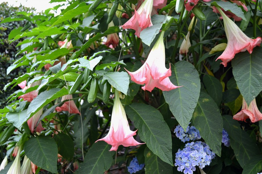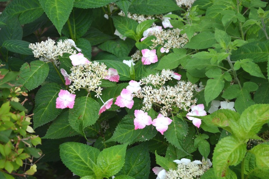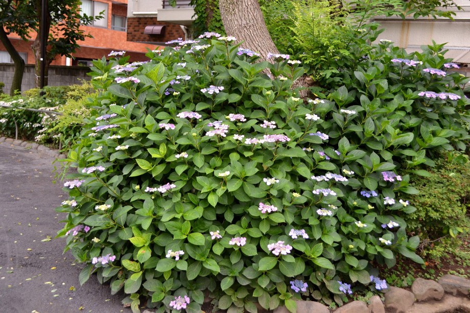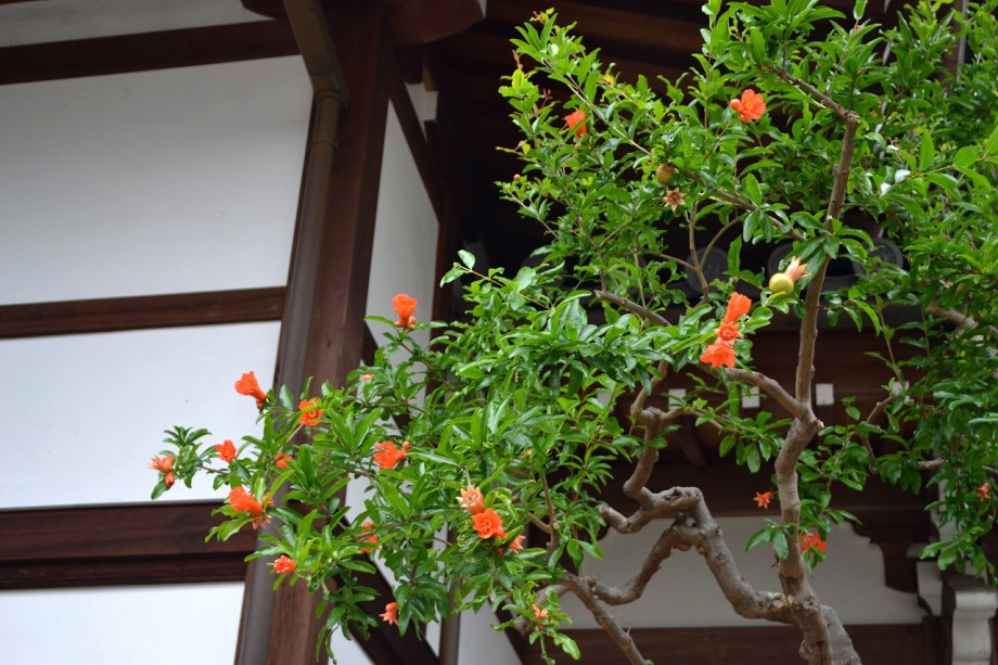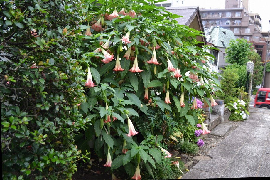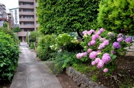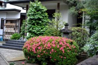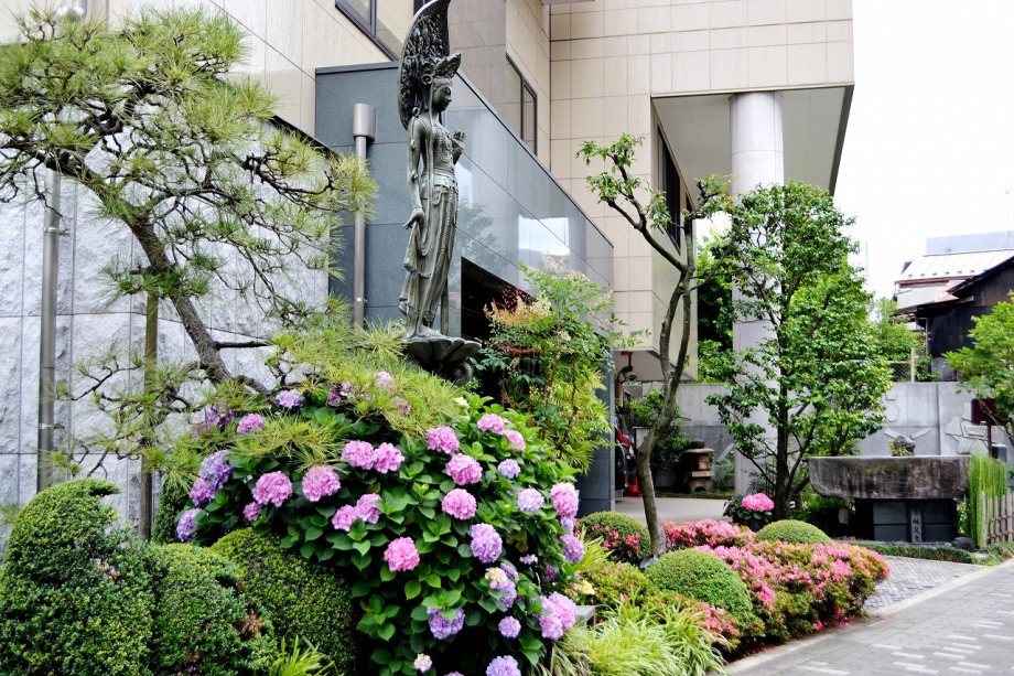「一言」林泉寺の前の仏像の回りにはサツキや紫陽花が咲いています。願海寺には色々な色の紫陽花が咲いています。特に、トランペットフラワー がたくさんの花が咲いています。常林寺には水鉢に水連の花が咲いています。玉鳳寺にはバラが咲いています。三田台遊園にはガクアジサイ があちこちに咲いています。正山寺には本堂の前にザクロの花が咲いています。