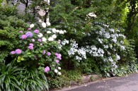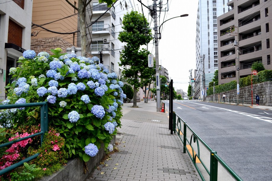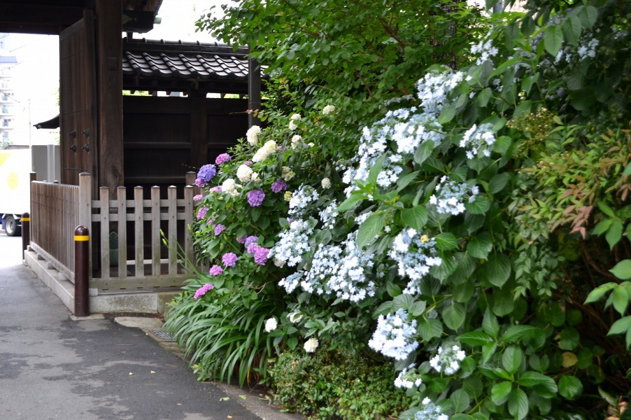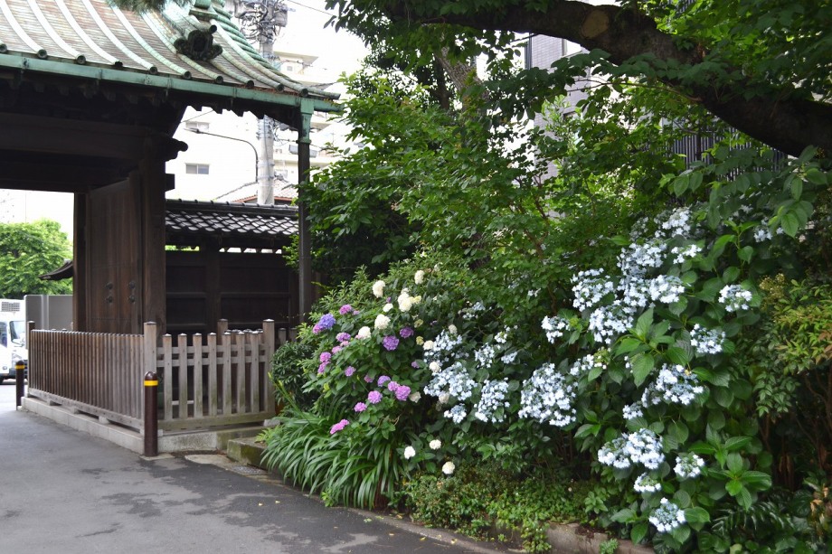 「一言」泉岳寺の門前には色々な種類のアジサイが咲いています。最近は門前の紫陽花の前に自動車が置かれて写真が撮り難くなっています。 證誠寺には桜の花が満開になり綺麗です。また、ヤマボウシも白い花が咲いています。伊皿子の坂道には紫陽花がたくさん植えられて おり、大きな花が咲いていますので歩いていて楽しいです。