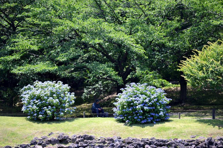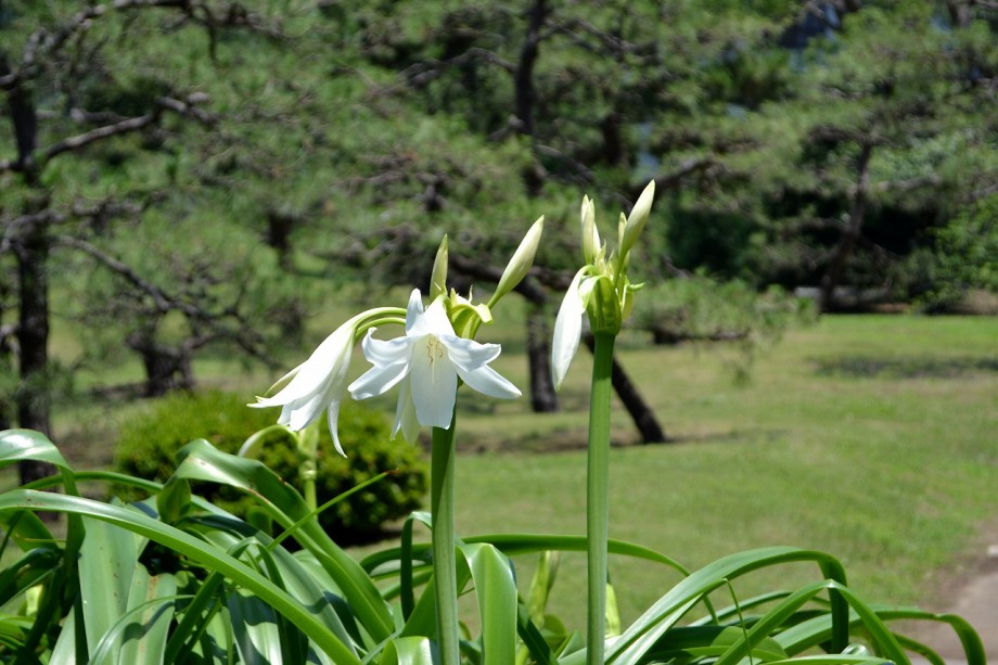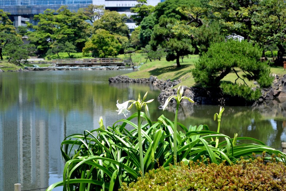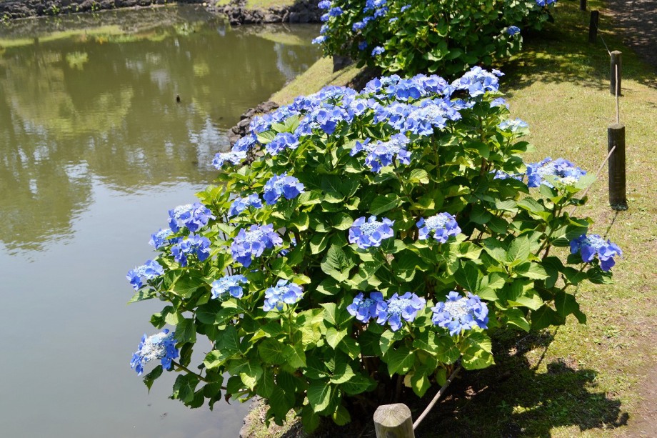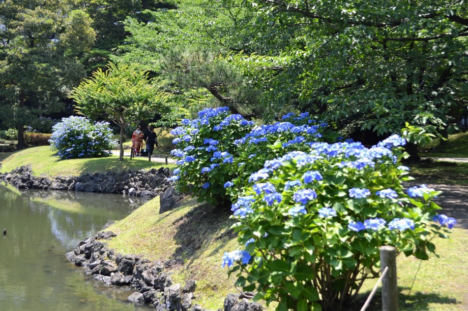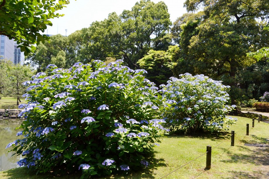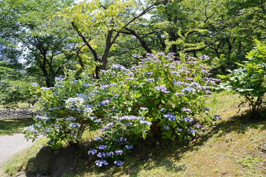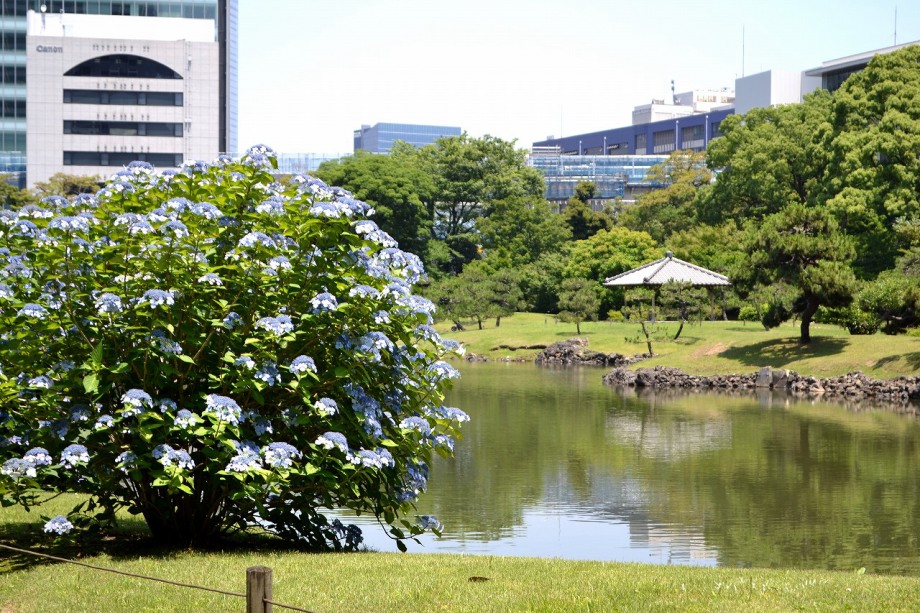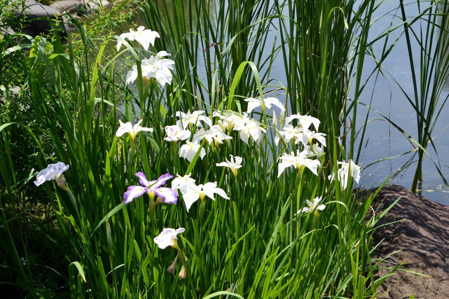 「一言」旧芝離宮に行きました。入口近くには桔梗やホタルフクロの花が咲いていました。池には花菖蒲が咲いていました。ノカンゾウも咲いていました。 色々なところに咲いている紫陽花も見頃になっていて綺麗です。庭園の奥方にユリが咲いていました。などしこの花も咲いていて散策して楽しいです。