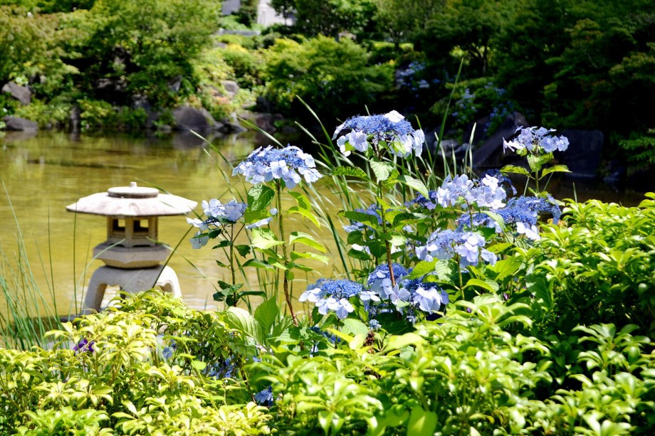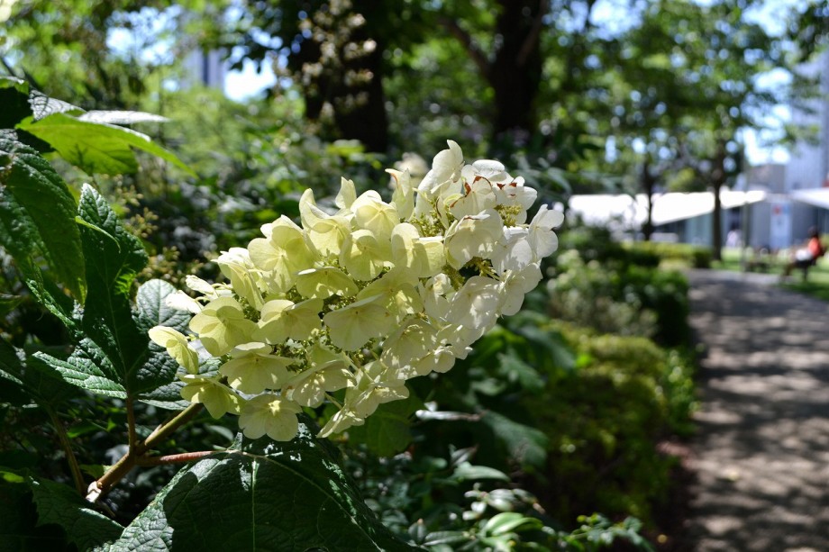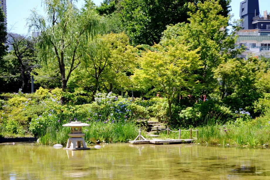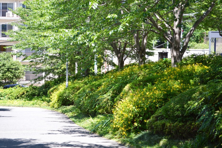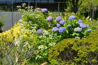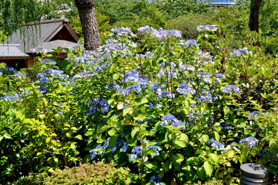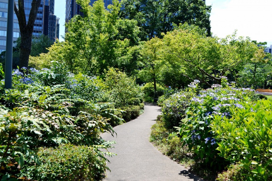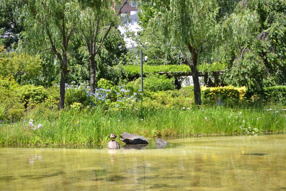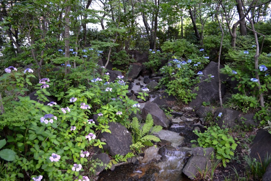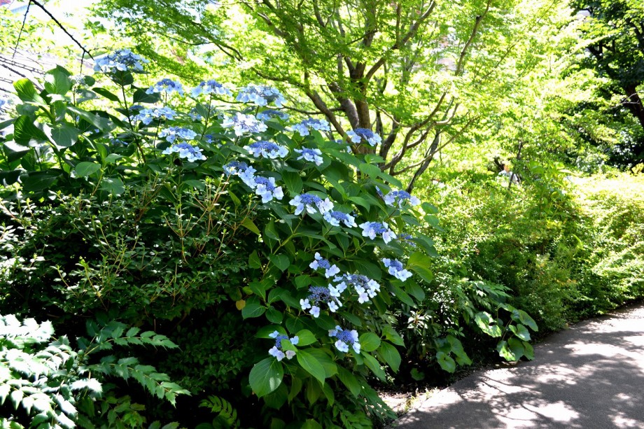 「一言」桧町公園にはビヨウヤナギの黄色い花がたくさん咲いています。紫陽花もたくさん植えており、どれも満開です。 池には花菖蒲や睡蓮の花が咲いています。公園の中にヤマボウシの白い花が満開で、遠くから見ると雪を被った 感じに見えます。東京ミッドタウンの庭園にはカシワバアジサイがあちこちに咲いています。アガパンサスの花が 咲き始めていますが、これからが本番という感じです。