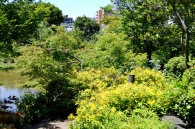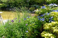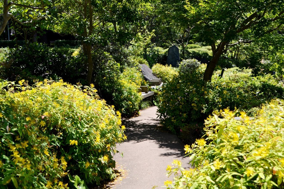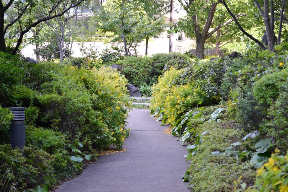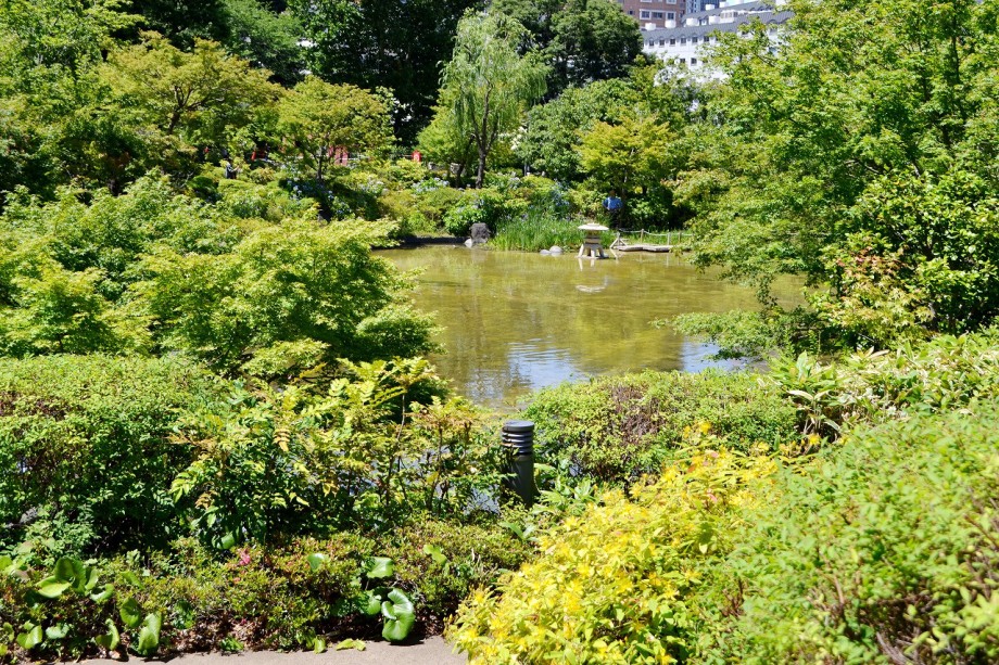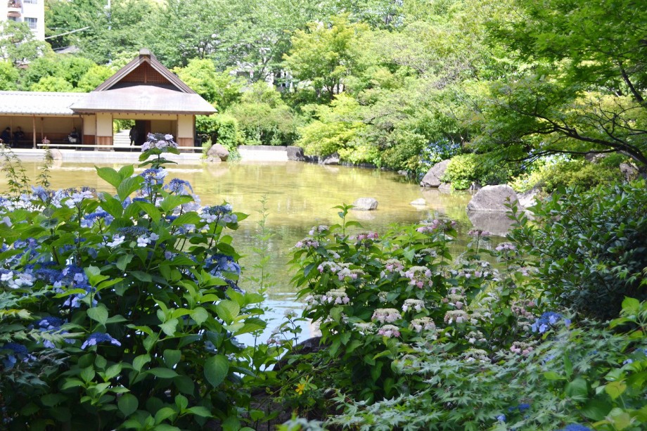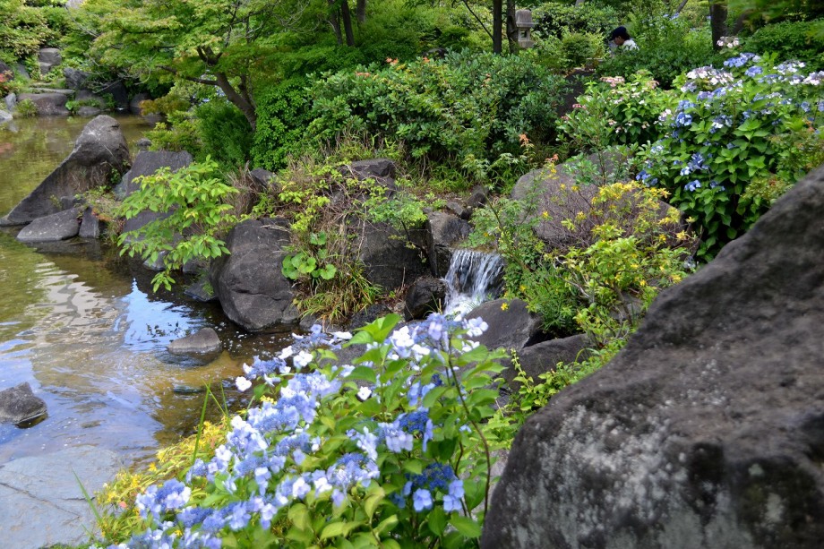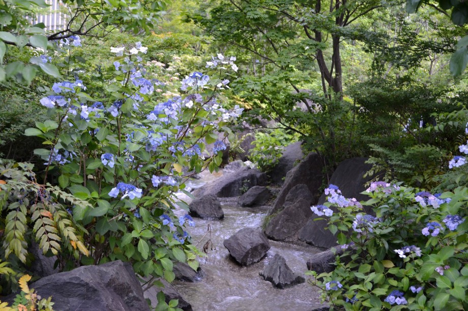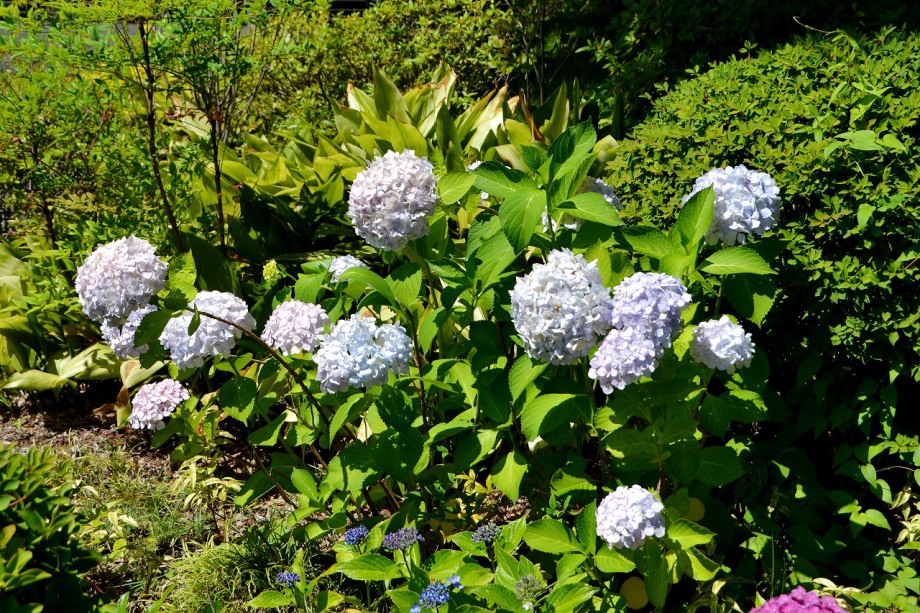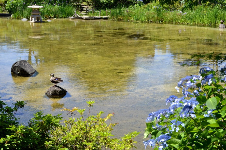 「一言」桧町公園にはビヨウヤナギの黄色い花がたくさん咲いています。紫陽花もたくさん植えており、どれも満開です。 池には花菖蒲や睡蓮の花が咲いています。公園の中にヤマボウシの白い花が満開で、遠くから見ると雪を被った 感じに見えます。東京ミッドタウンの庭園にはカシワバアジサイがあちこちに咲いています。アガパンサスの花が 咲き始めていますが、これからが本番という感じです。