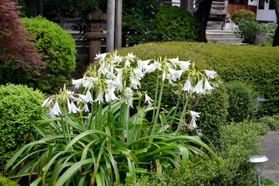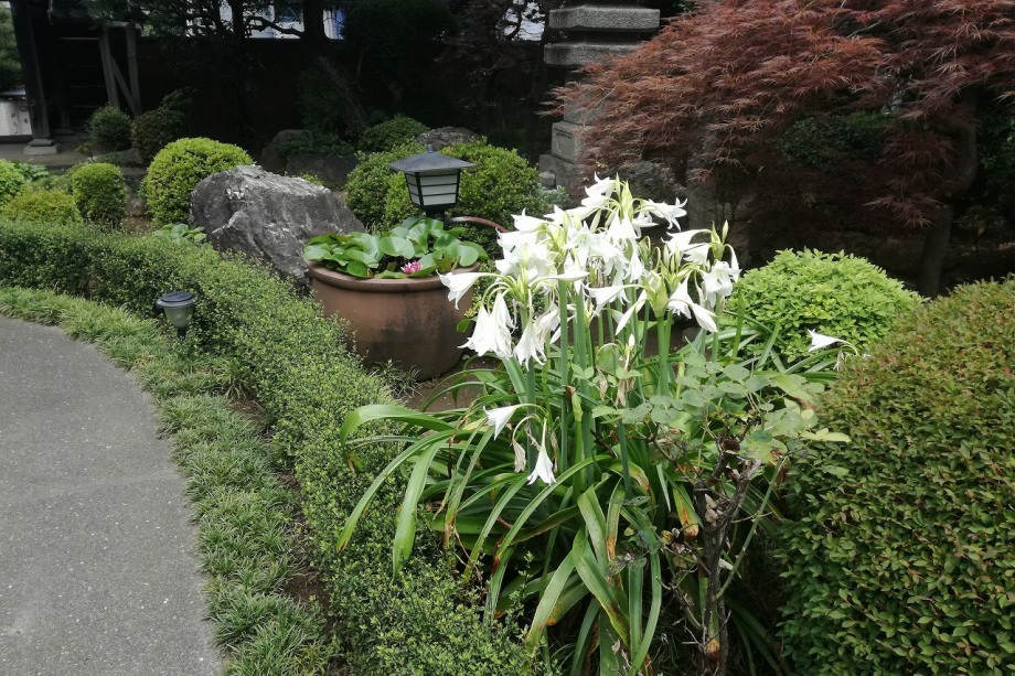 「一言」どんぐり児童遊園には色々な種類の紫陽花が咲いています。庭園には色々な花が咲き華やかです。クチナシも咲き、良い香りがしています。 八芳園にも数は少ないが紫陽花が咲いています。三田寺町の慈眼寺には夾竹桃が咲き、林泉寺にはタイサンボクや紫陽花が咲いています。 常林寺には睡蓮やユリが咲いています。證誠寺にも赤い花やアガパンサスが咲いています。あちこちに色々な花が咲き賑やかです。