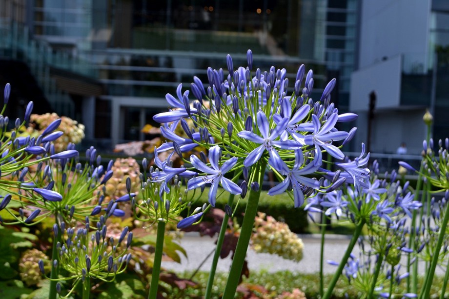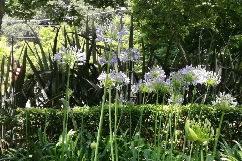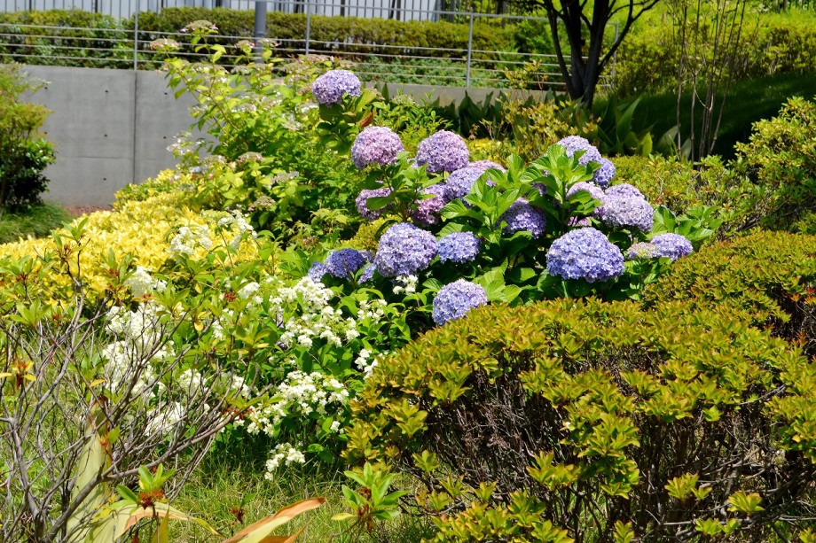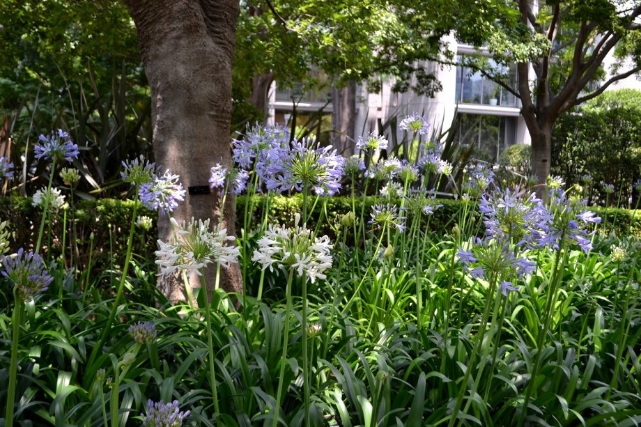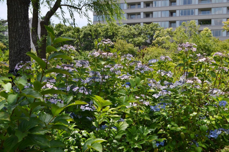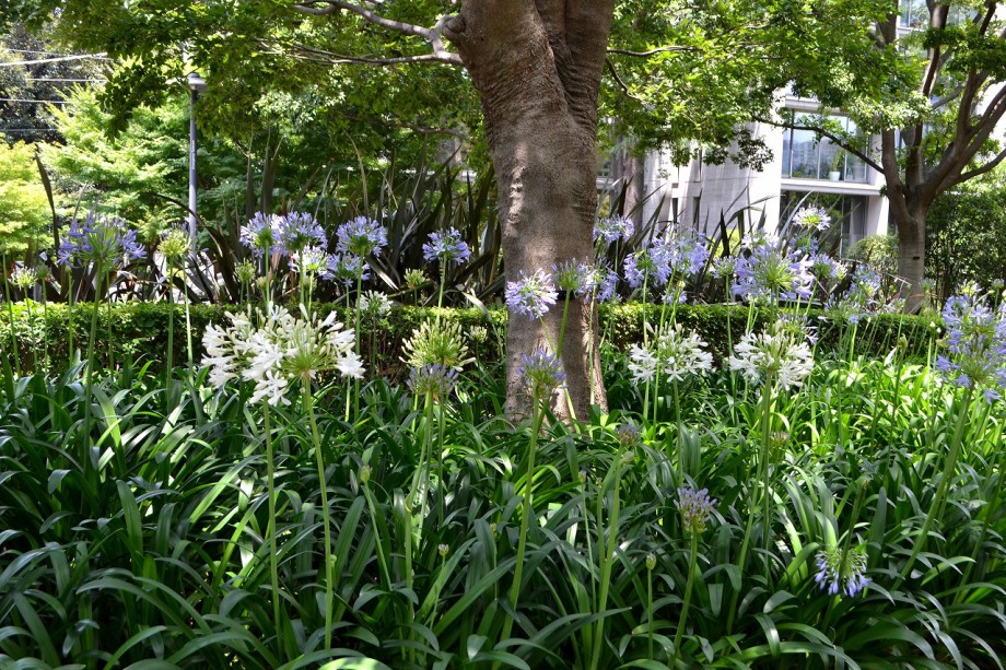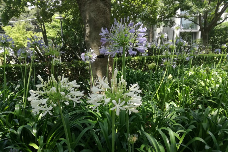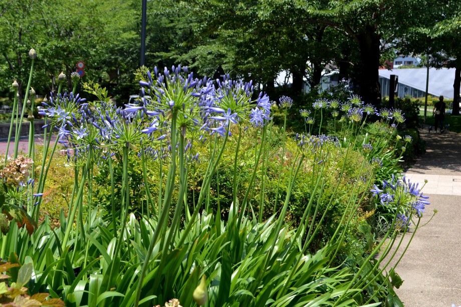 「一言」東京ミッドタウンのガーデンにアガパンサスが咲き出しました。たくさん植えられているアガパンパスが一斉に咲き出したので、 なかなか綺麗です。紫陽花の花もまだ咲いています。桧町公園には、ノカンゾウや花菖蒲、ビヨウヤナギ、ガクアジサイなど 色々な花が咲いていて散策が楽しくなる感じがしました。
