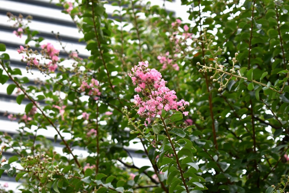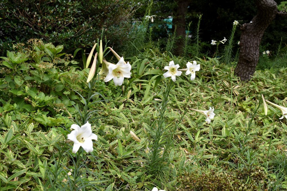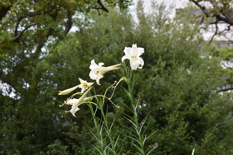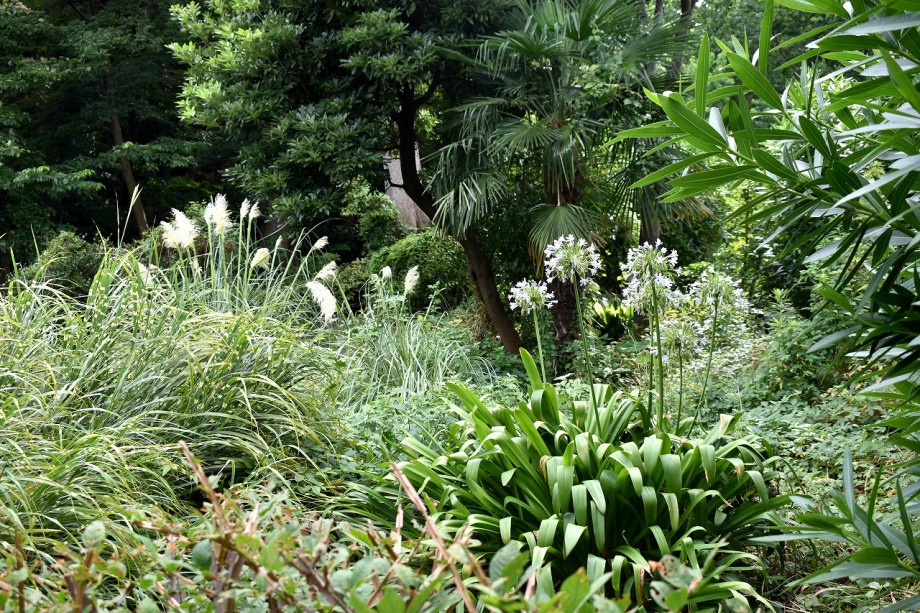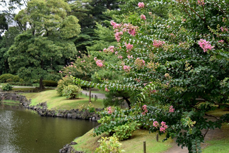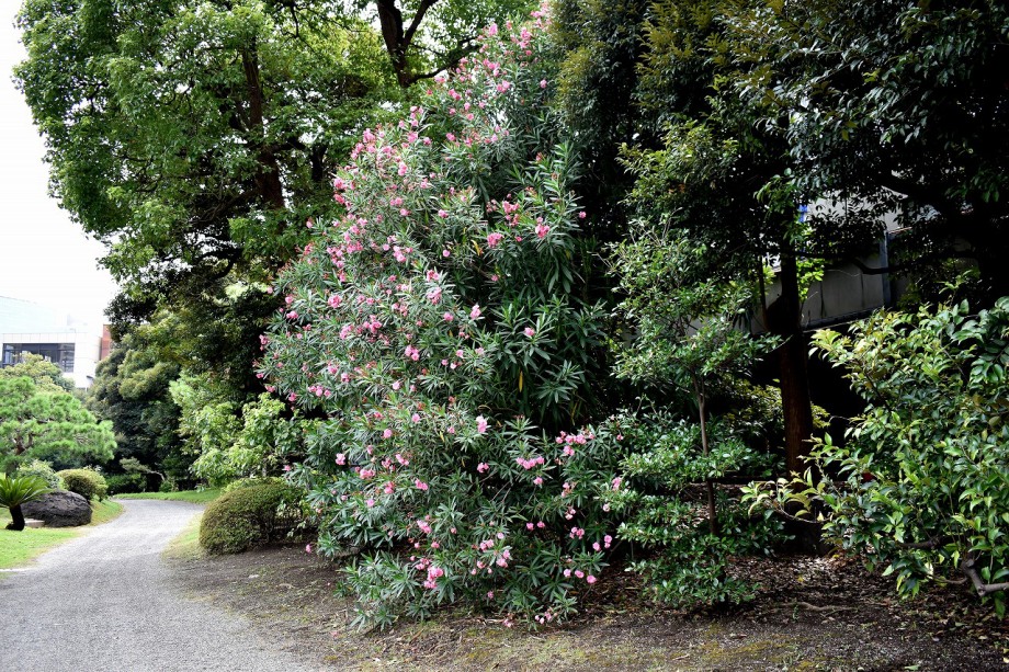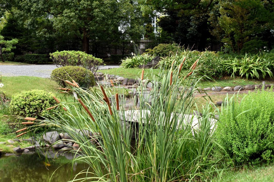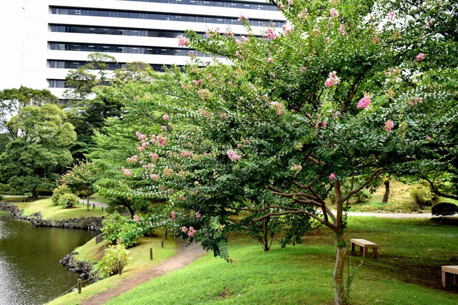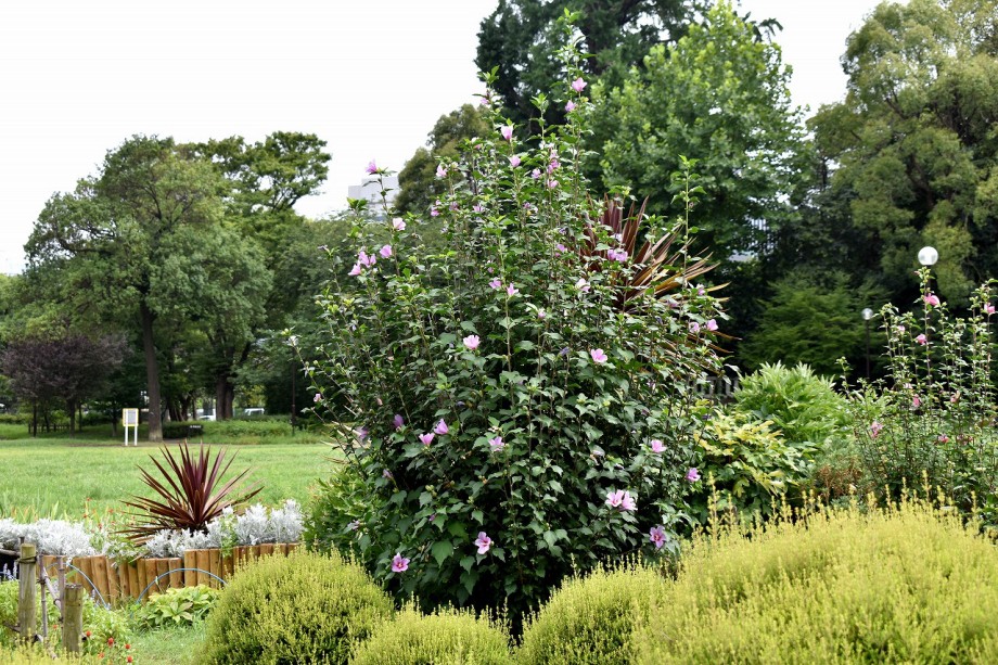 「一言」芝公園にはパンパスグラスが穂を出し始めています。ムクゲの木にも花が咲いています。リンゴが木になっています。 旧士は離宮を入ったところには桔梗がまだ咲いています。園内にはタカサゴユリがたくさん咲いています。池には蒲の穂が 出ています。ムラサキシキブの実もなっています。百日紅のピンクの花も咲き出しました。ピンクの夾竹桃が咲いています。