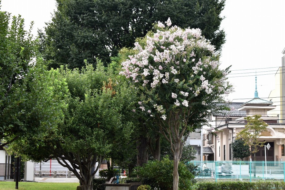 「一言」慈眼寺や明福寺、薬王寺、済海寺、実相寺など三田寺町の多くのお寺に白やピンクの百日紅が咲いています。 正山寺のザクロの実も大きくなってきました。三田台遊園にも大きな白い百日紅が満開になりました。紫陽花の 花も枯れないで青くなりましたが、これもまた綺麗な感じです。