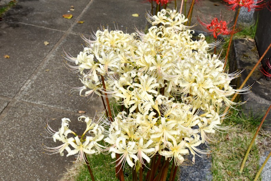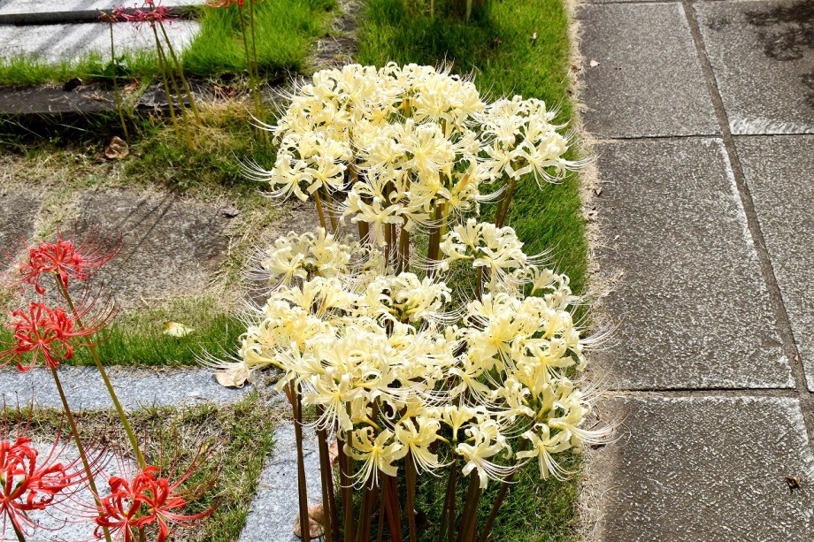 「一言」三田寺町の彼岸花や秋の花を見に行きました。林泉寺の前には彼岸花が咲いています。明王院にはホトトギスの他に秀明菊の花が咲きました。 玉鳳寺の彼岸花はまだ咲いていますが早く咲いた花は枯れかけています。実相寺の近くにはススキの穂の横に萩の花が咲き出しました。正山寺 には彼岸花がたくさん咲いています。龍源寺には芙蓉がたくさん咲いていました。また、秀明菊も咲いています。プリンセスミチコの花が増えてきました。