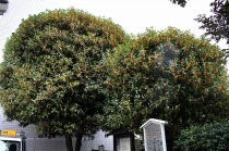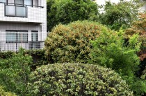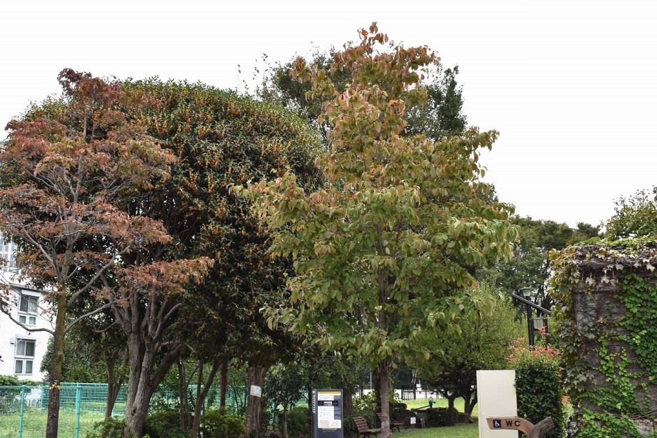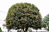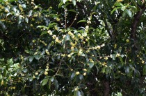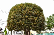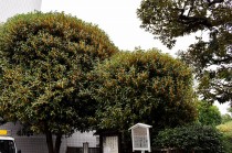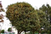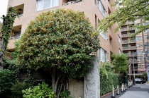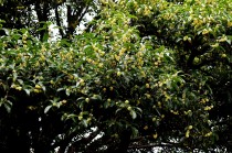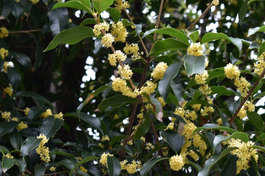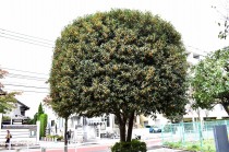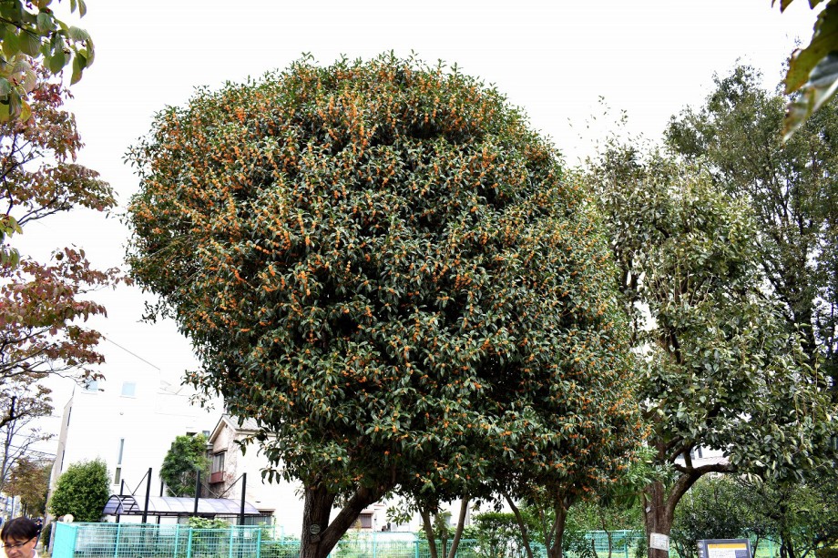 銀木犀が咲いています。大きな銀木犀の木には白い花がたくさん咲いています。三田台遊園の入り口に大きな金木犀の木が