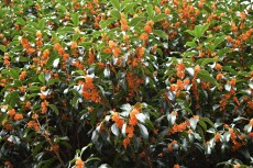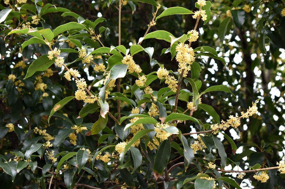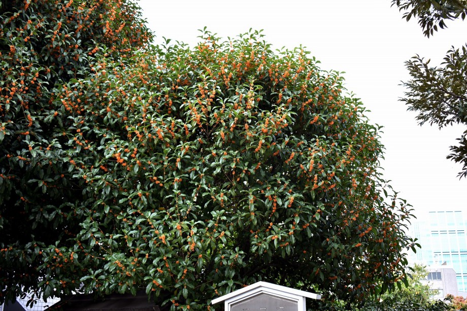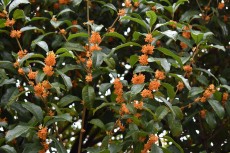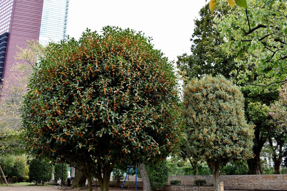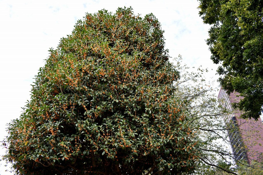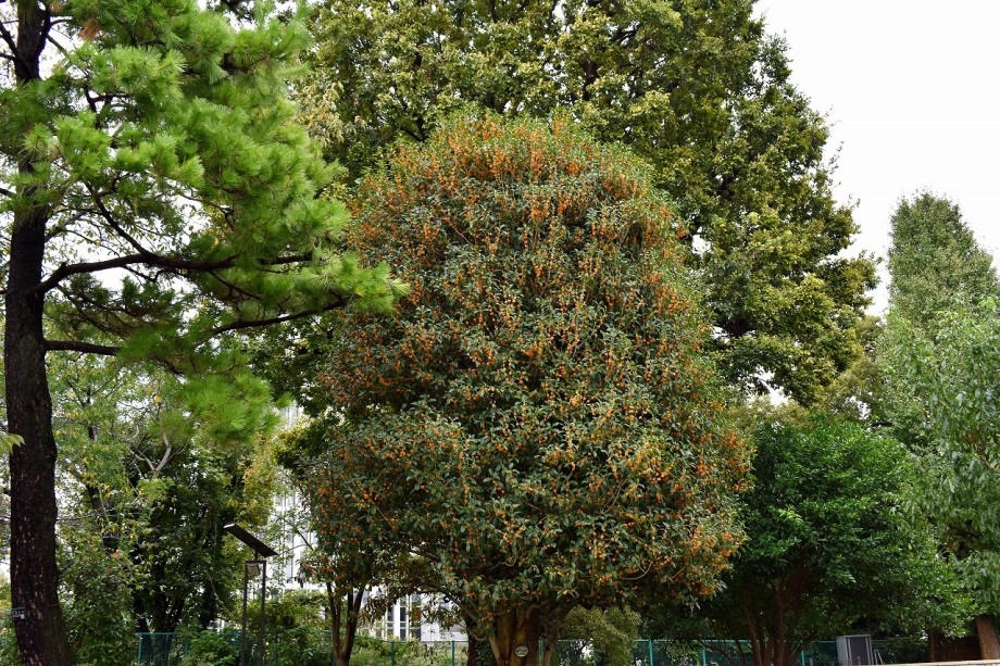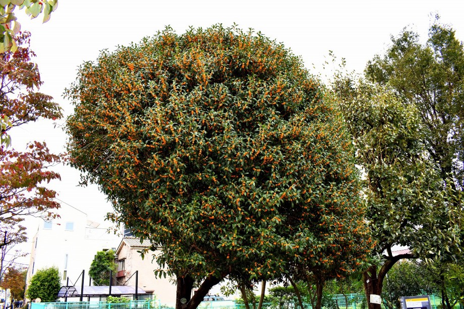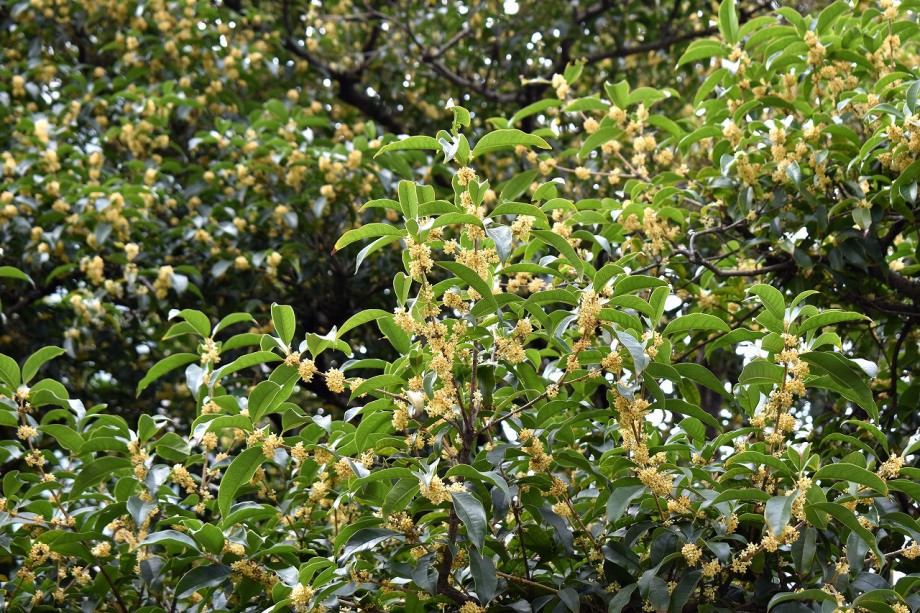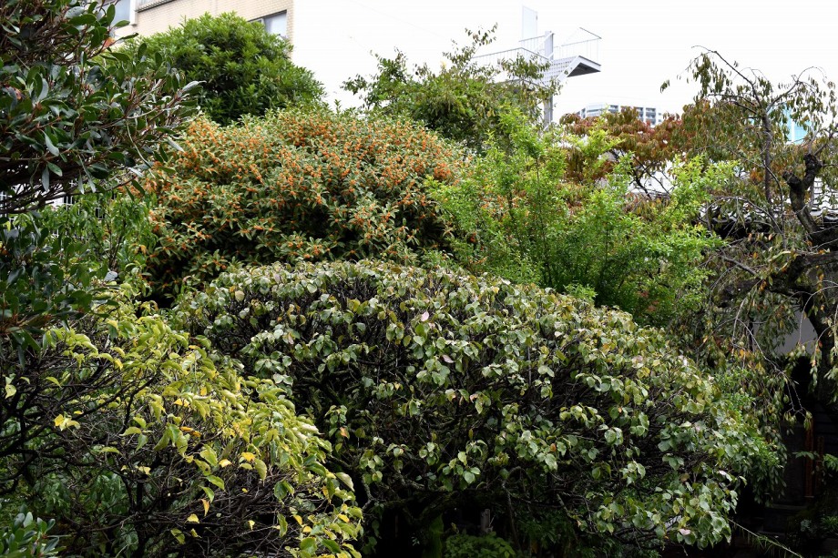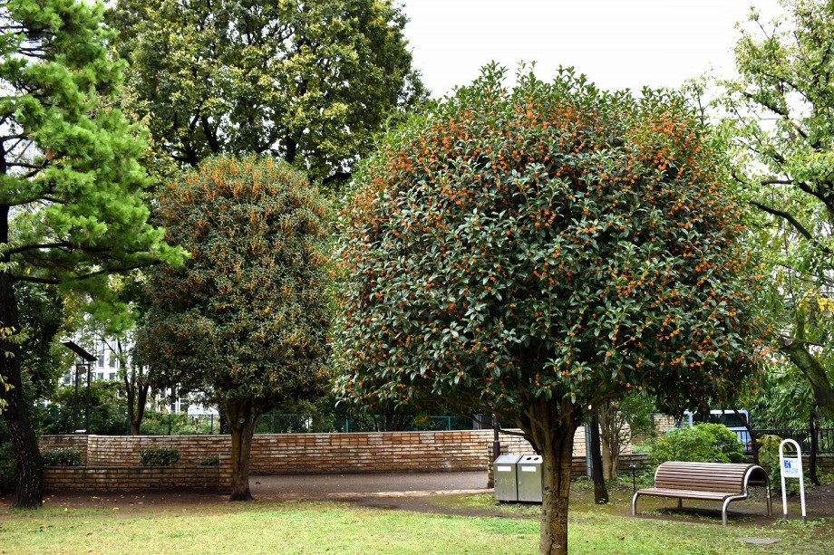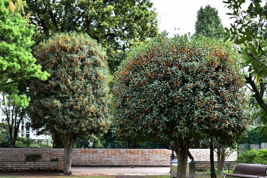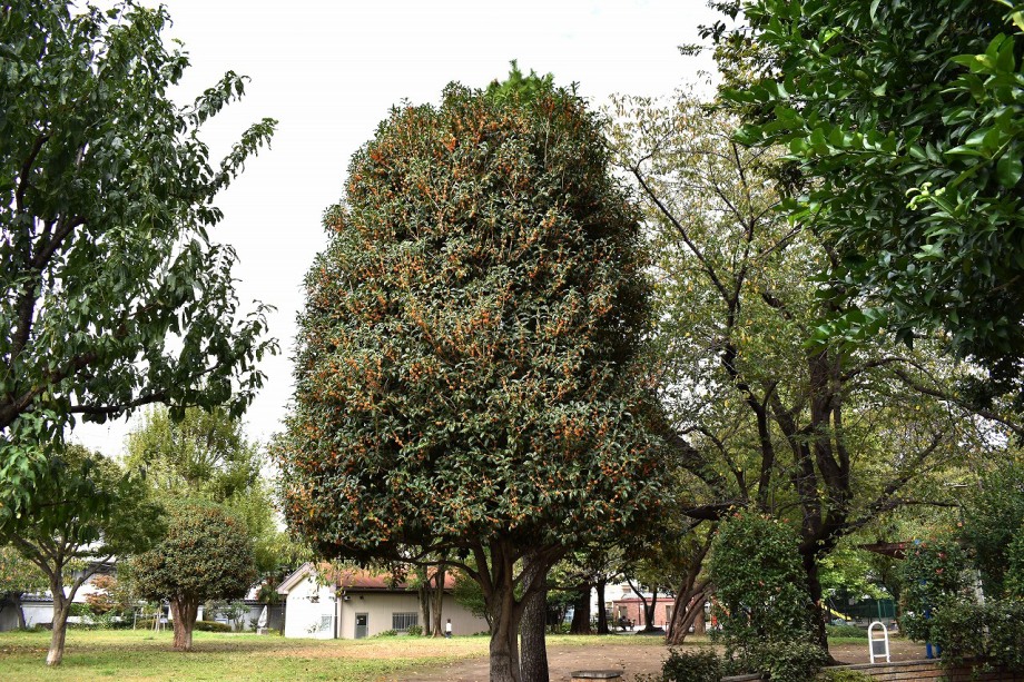「一言」三田地域の金木犀が一斉に咲き出したので写真を撮りに行きました。先日が天気が悪く金木犀の花が上手く写らなかったので、 再度挑戦しました。大松寺の銀木犀は良い色をしていましたが写真に上手く表せない感じでした。貝塚公園には3本の金木犀が 咲いていました。亀塚公園の横の済海寺にも金木犀が咲いていました。三田台遊園の金木犀も見事でした。薬王寺には3本の金木犀 が満開でした。ホトトギスや秀明菊も咲いていました。そろそろ紅葉が始まりました。