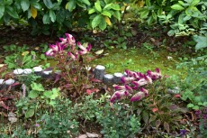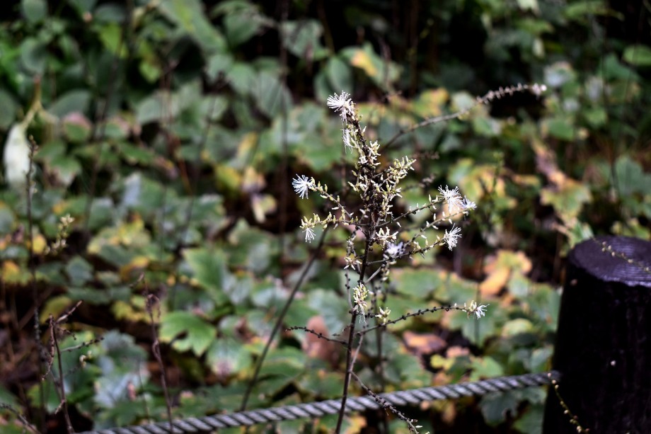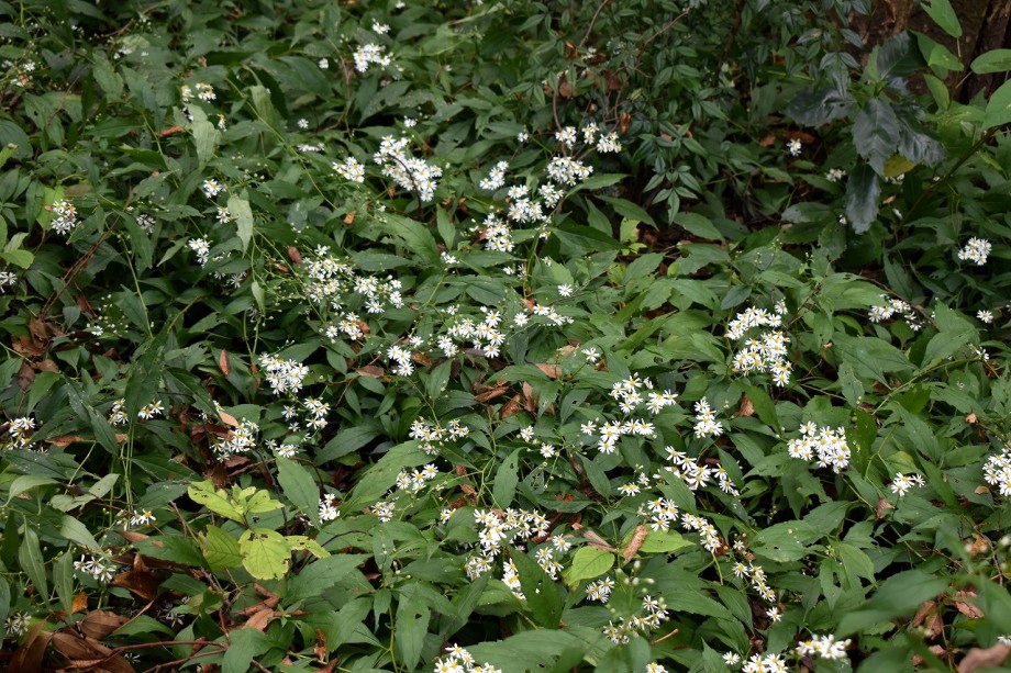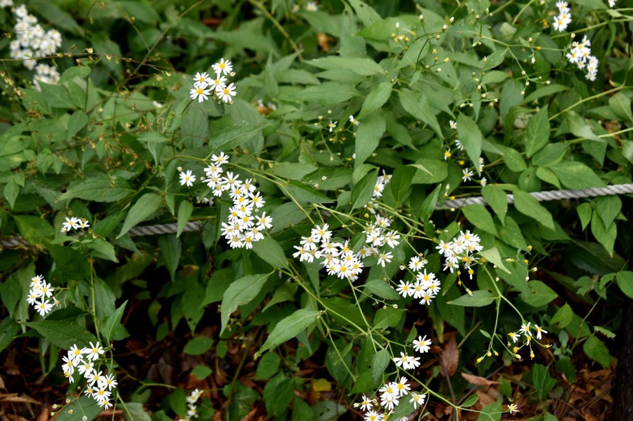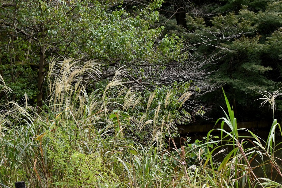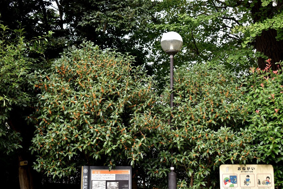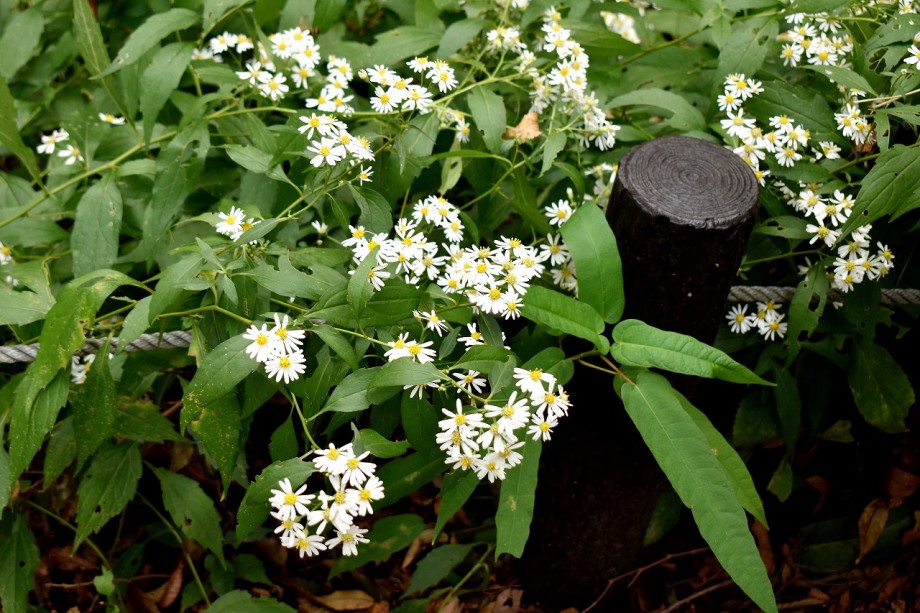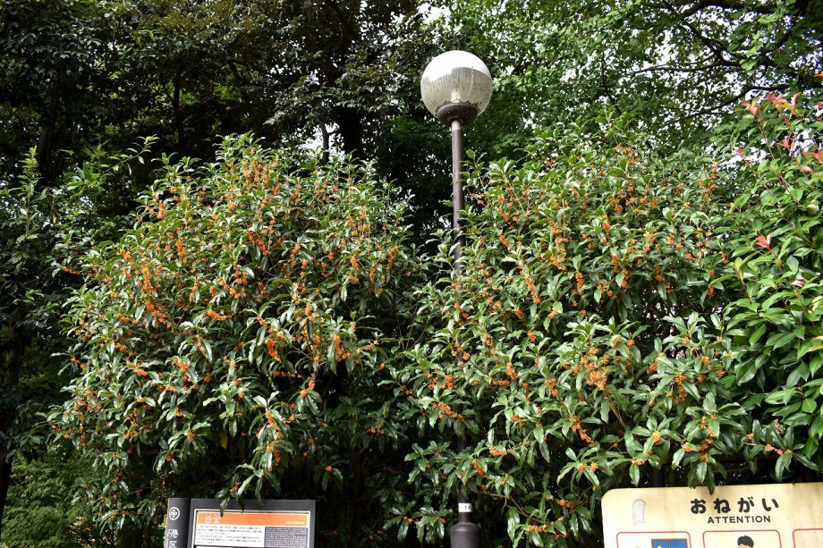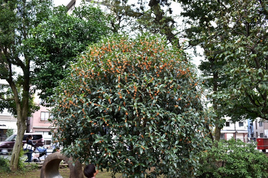 「一言」ドングリ遊園に金木犀が数本植えられていて花が咲いています。目黒通リ沿いにも金木犀が咲いていて良い香りがしています。 庭園には色々な花が咲いています。自然教育園にはアザミの花が咲いています。入り口にはユウガキクの花が一杯咲いています。 フジバカマやアキノウナギツカミなど可愛い花も咲いています。池にはセイダカアワダチソウが黄色い花を咲かせています。