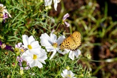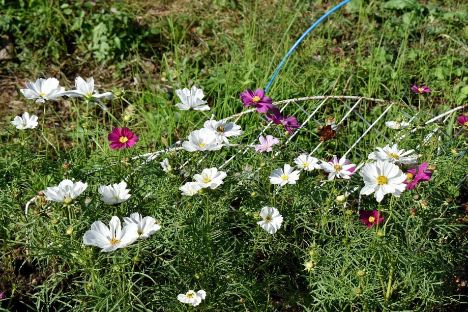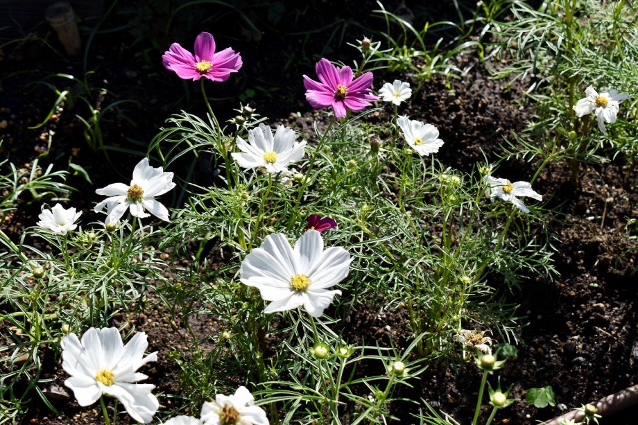 「一言」芝公園に写真を撮りに行きましたら、コスモスが咲いていました。トンボや蝶々なども飛んでいました。花水木も赤い実が たくさん咲いていました。芝プリンス公園にはバラの花が咲いていましたが、花の数が少ないので、手入れをしている人に 聞きましたら、これから咲くとのお話でした。