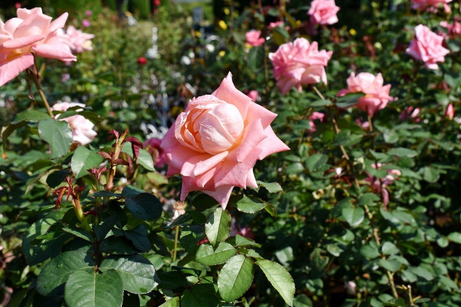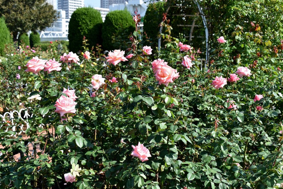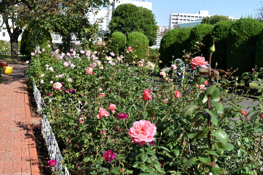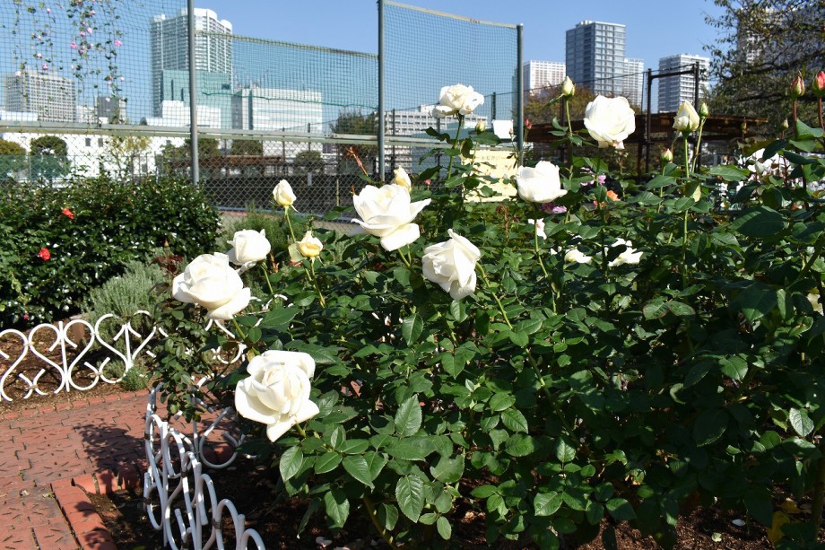 「一言」芝中央公園にたくさんのバラの花が咲きました。9月に行った時は大胆に剪定していたので、今年はバラの花は見られないのか 心配しましたが綺麗な花が一斉に咲き綺麗です。芝浦の運動場のバラの花は終わったのか咲いているお花が少ない感じがしました。