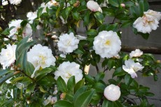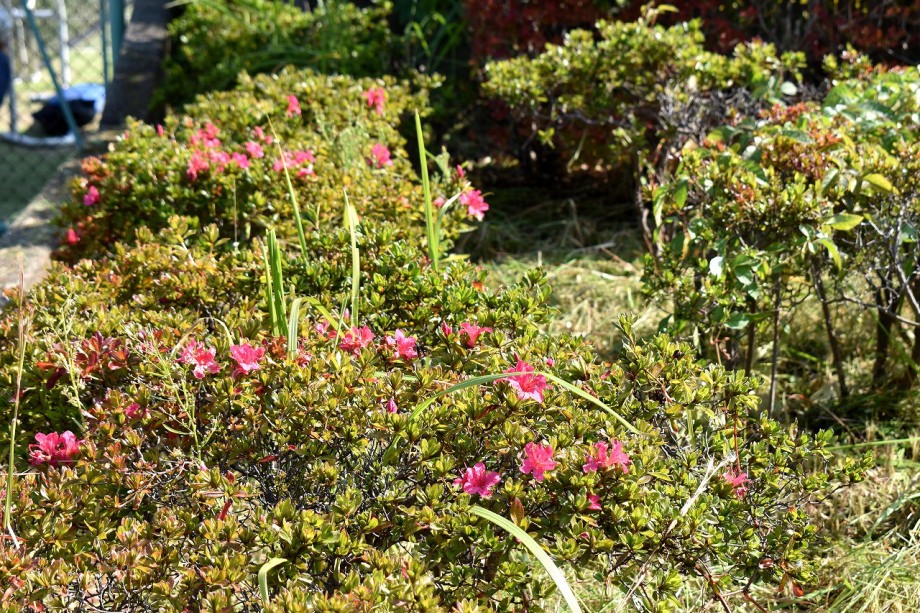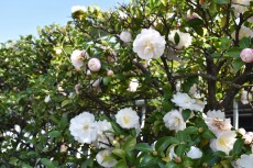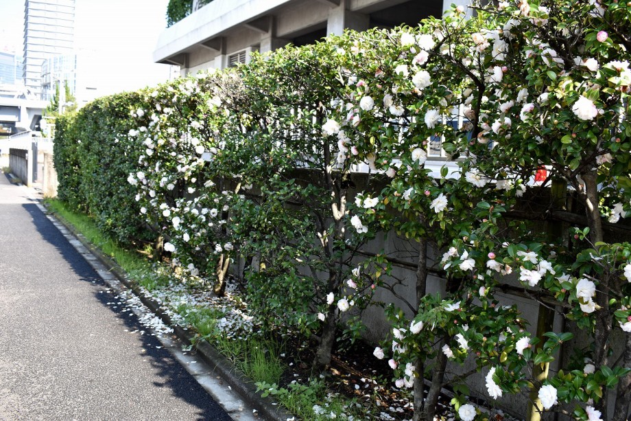 芝浦運動場に入るところにはさざんか?の白い花がたくさん咲いていて綺麗です。