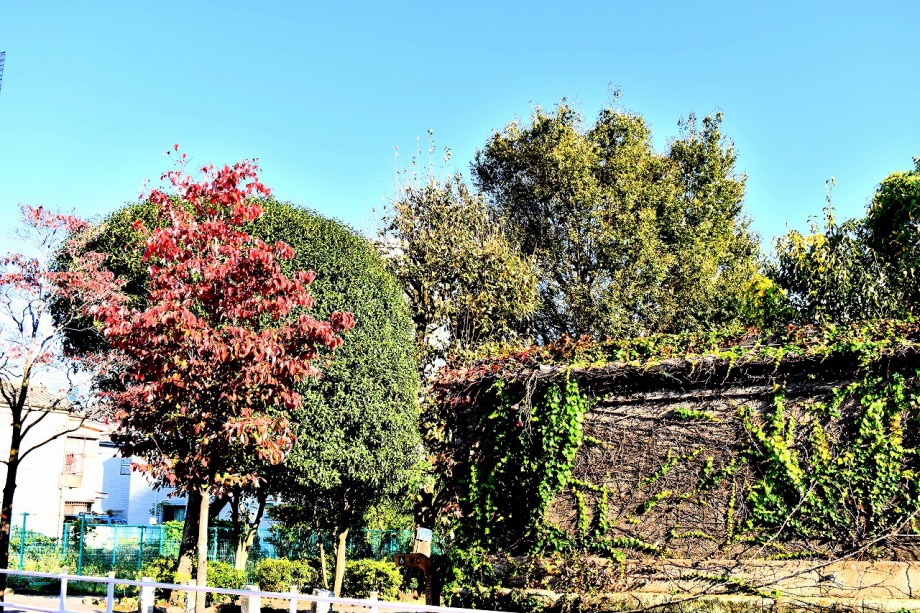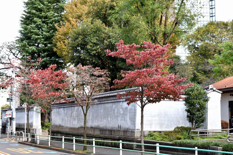 「一言」この時期はお花が少なくなりましたが、正山寺にツワブキが咲き、三田台児童遊園の前のキリスト友会に綺麗なさざんかが咲いていました。 正山寺の柘榴のみが真っ赤になり割れていました。亀塚公園や三田台遊園の前のハナミズキが良い色になってきましたが、花水木の紅葉は 光の当たり方で大きく色が変わります。泉岳寺のドウダンツツジも良い色になってきました。ススキもまだ穂を出していて、松の緑と調和しています。 二本榎通りの花水木も色が変わってきました。