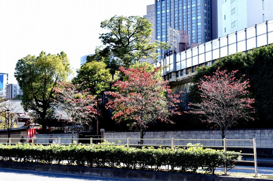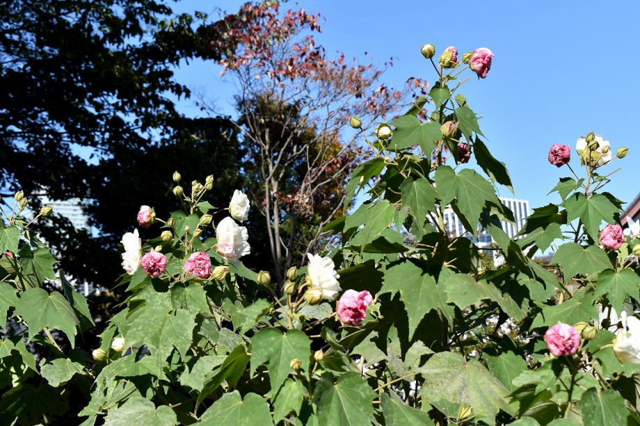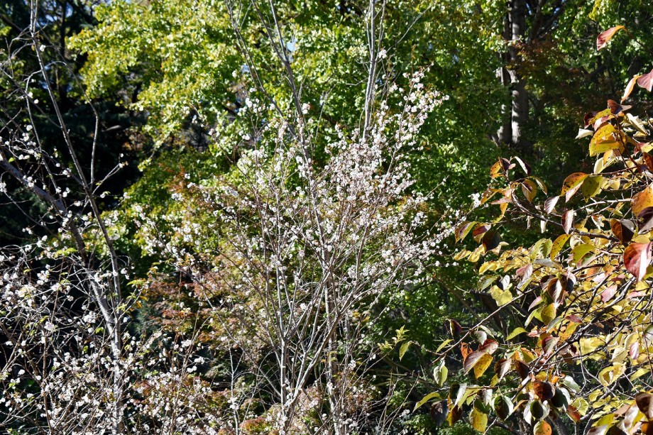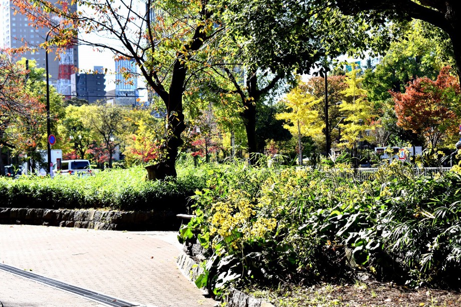 「一言」芝公園に十月桜が満開です。十月桜の木の下にはトランペットフラワーや色々な可愛い花が咲いています。 芝公園の広場には山法師が紅葉しています。道路沿いの花水木も紅葉していました。増上寺のイチョウは かなり黄色くなっている木がありました。港区役所の前にはうるしが紅葉し始めています。花水木も綺麗です。 芝プリンス公園にはモミジが紅葉しています。バラの花は少ないですが、咲いている花は綺麗です。
