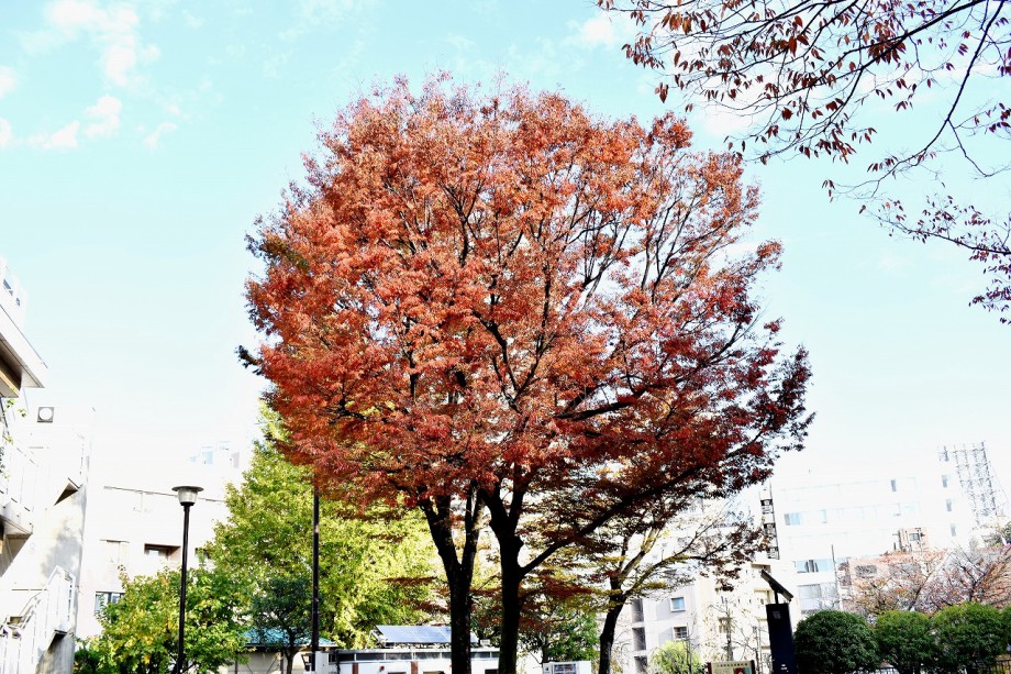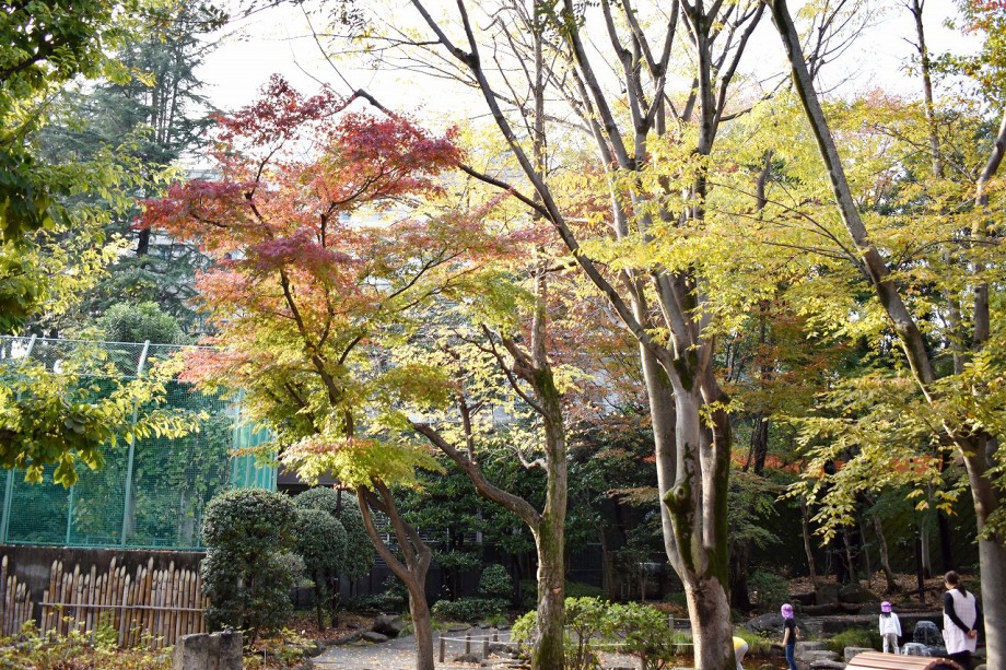 「一言」東京都庭園美術館の回りの銀杏が黄葉し始めています。東大医科研の銀杏もかなり黄葉しています。医科研にはドウダンツツジが あり、赤くなっていました。明治学院大学の銀杏も一部が黄葉しています。高輪公園では山法師が紅葉しています。木々も秋色に変わり 太陽の陽が当たり輝いていました。モミジも紅葉が始まっていました。泉岳寺のドウダンツツジも赤くなっていましたが散り始めていました。 山門の近くのモミジも紅葉が始まっていました。