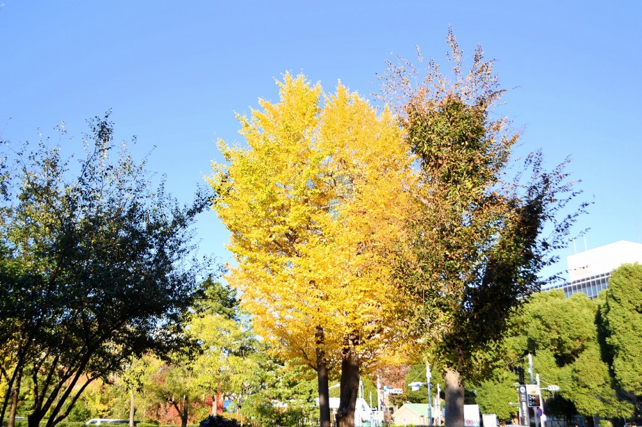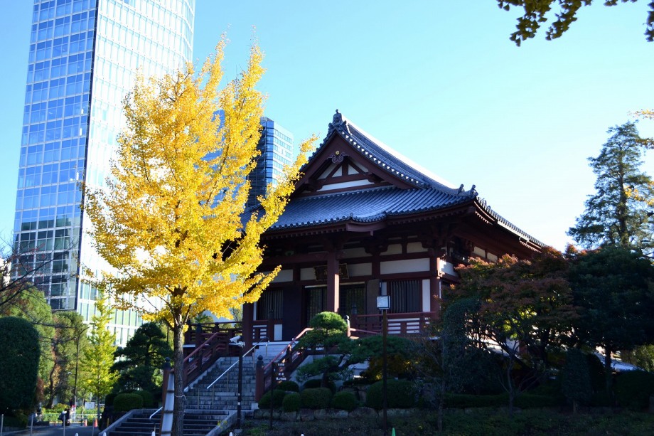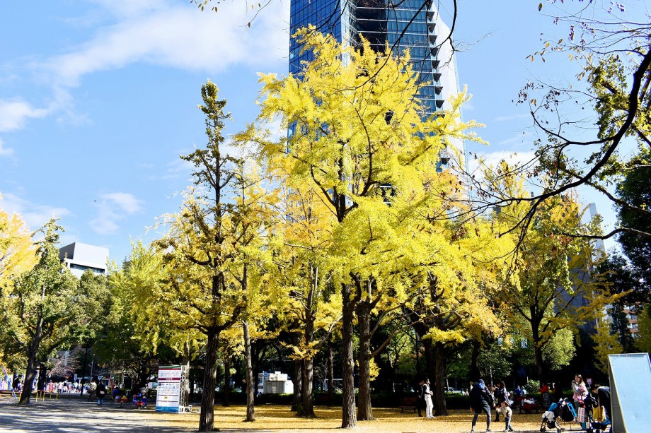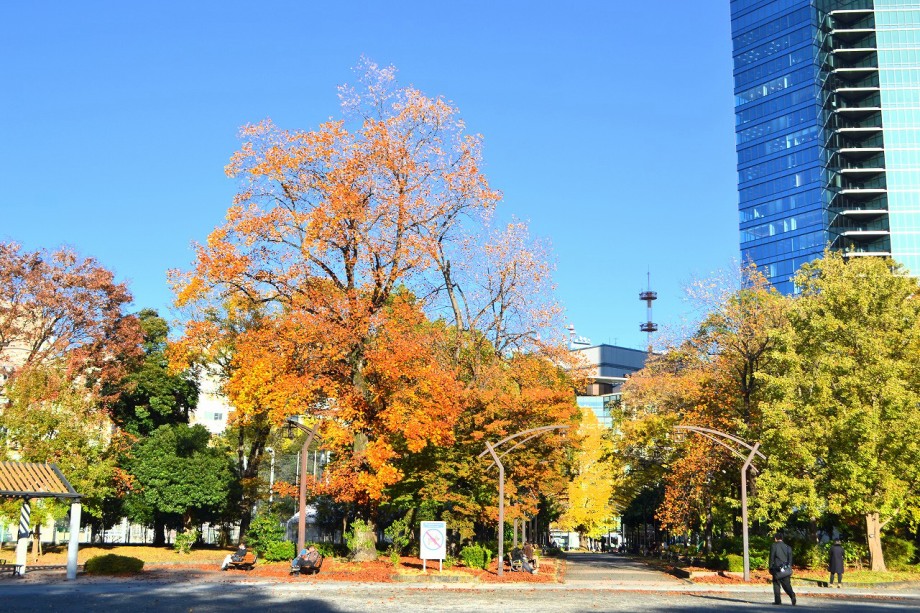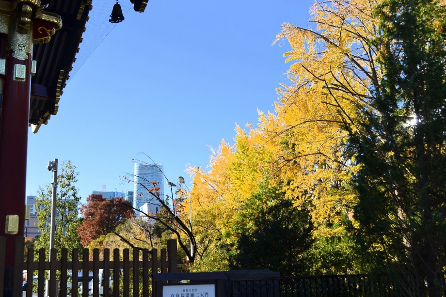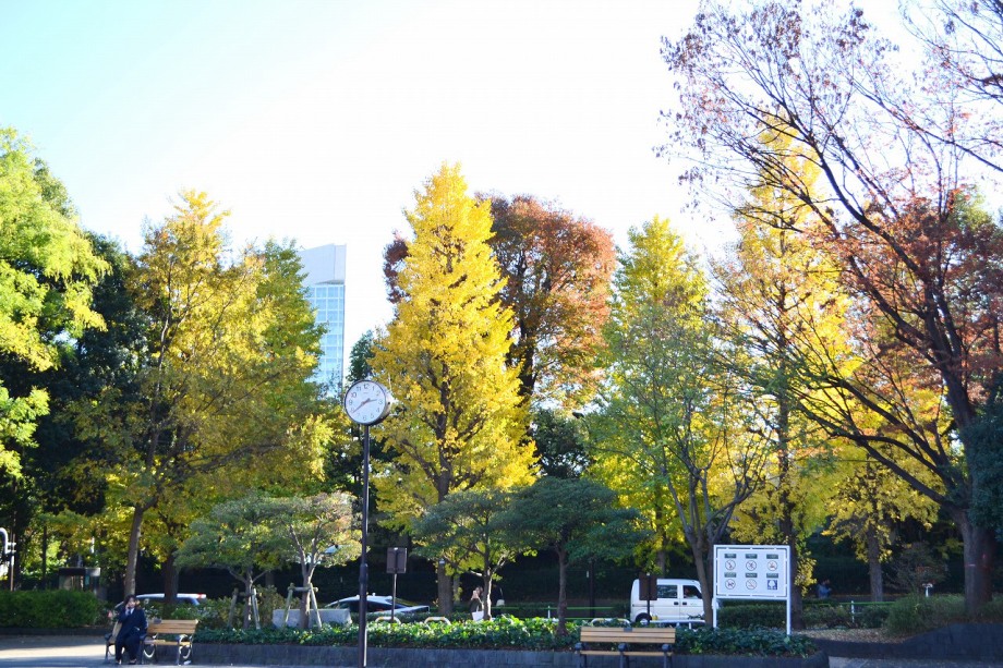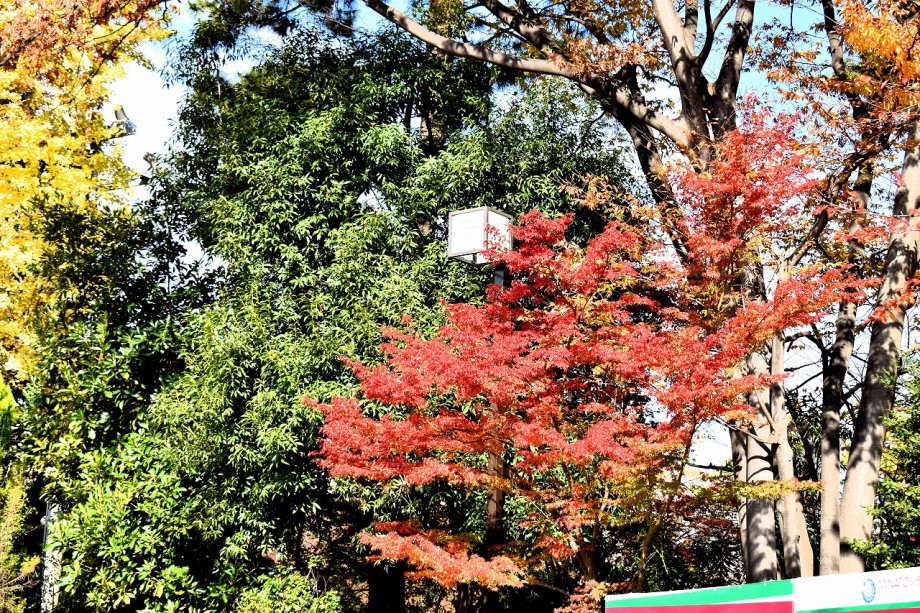 「一言」芝公園のイチョウが黄葉し、早く紅葉したイチョウは散り始めていて、木の下が黄色くなっています。大きなの木が葉の色を変えて 太陽に当たり綺麗です。増上寺のモミジも紅葉が始まっていました。港区役所の前のうるしもかなり赤くなっています。道路沿いの イチョウも黄葉して雰囲気の良い道になっています。東京プリンスの入り口の門も完成して綺麗になりました。