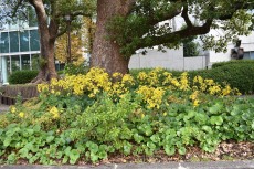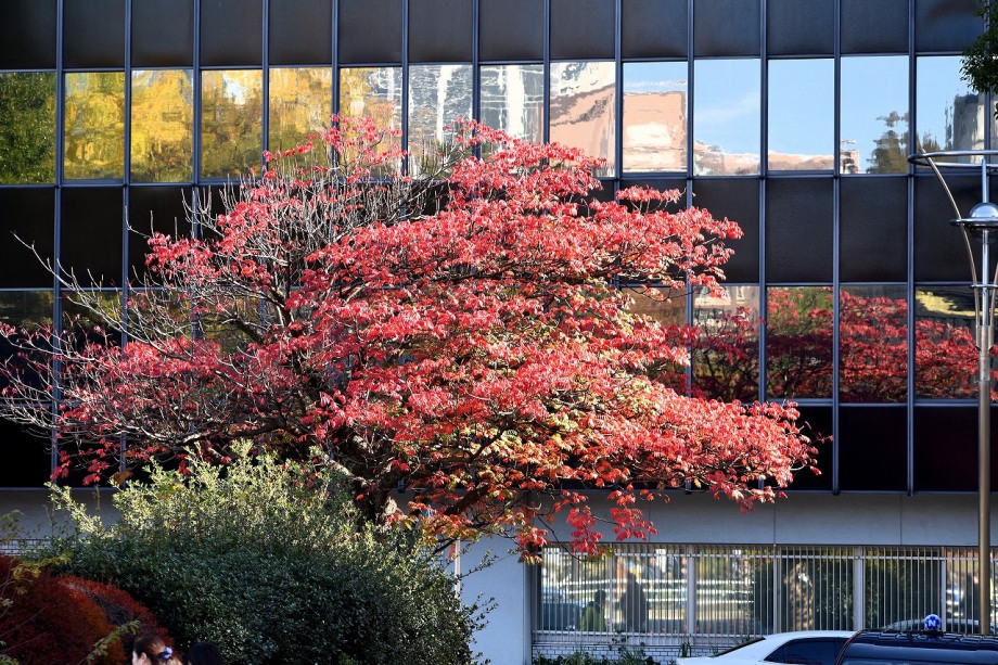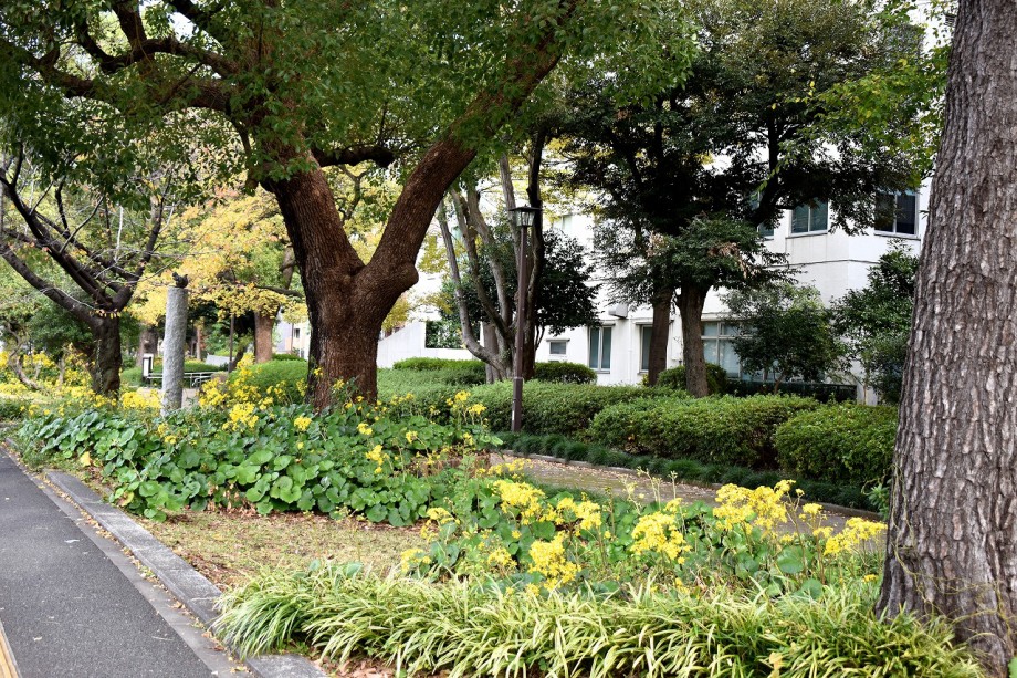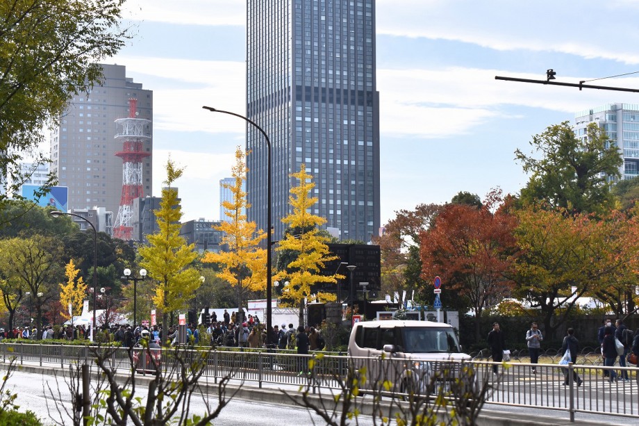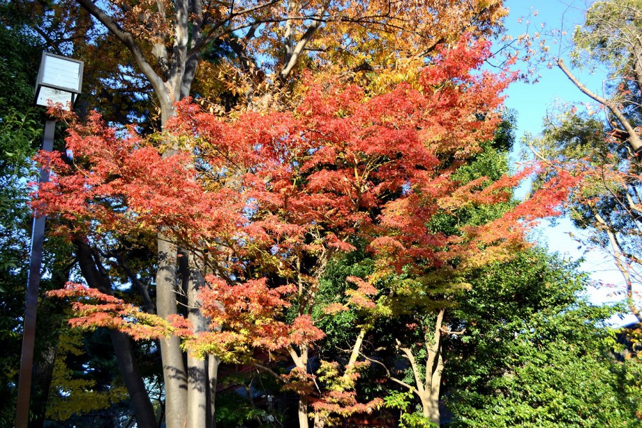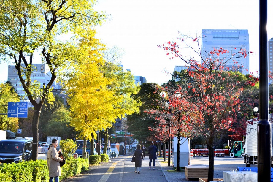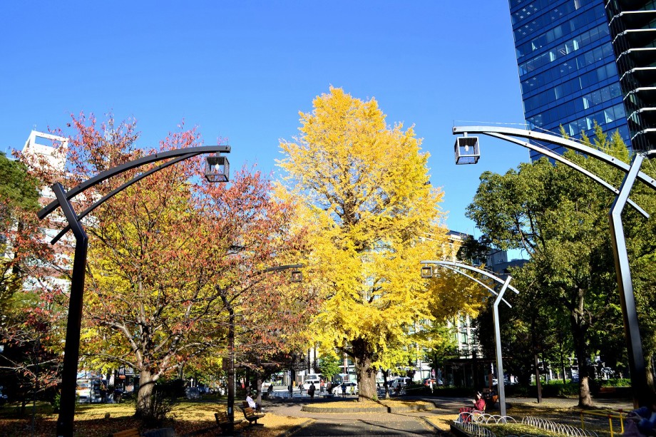 「一言」芝公園のイチョウが黄葉し、早く紅葉したイチョウは散り始めていて、木の下が黄色くなっています。大きなの木が葉の色を変えて 太陽に当たり綺麗です。増上寺のモミジも紅葉が始まっていました。港区役所の前のうるしもかなり赤くなっています。道路沿いの イチョウも黄葉して雰囲気の良い道になっています。東京プリンスの入り口の門も完成して綺麗になりました。