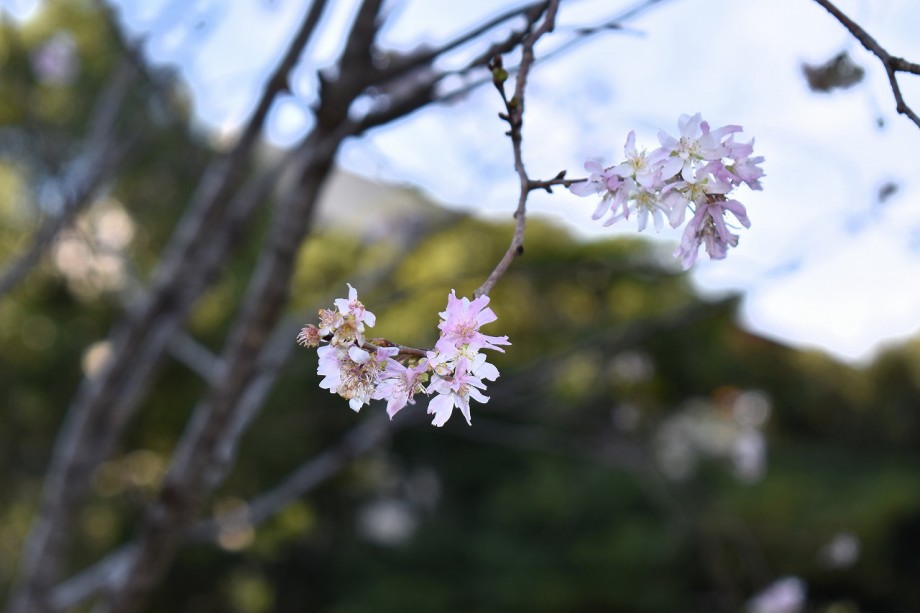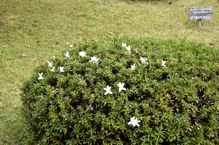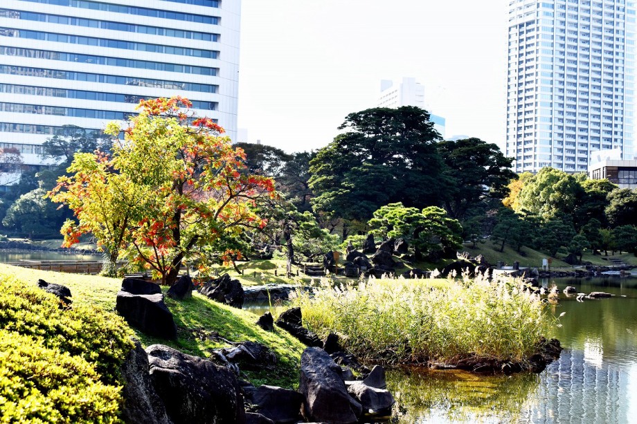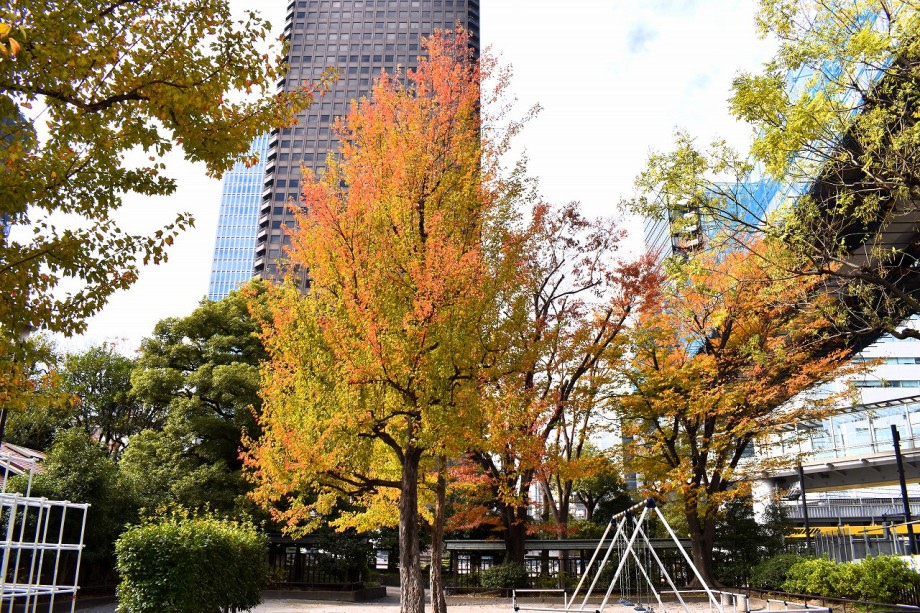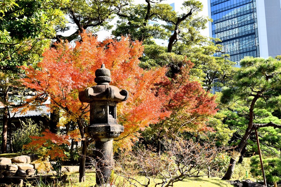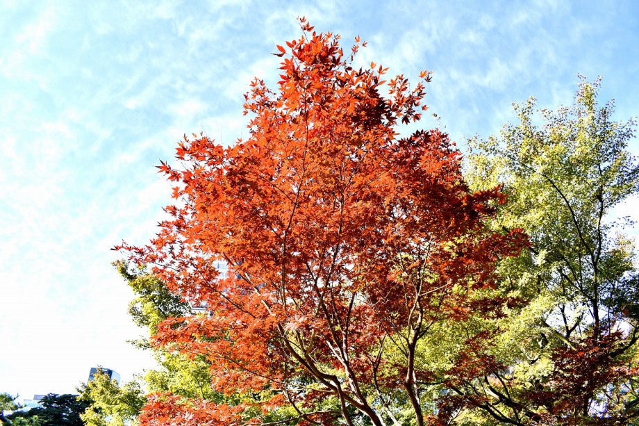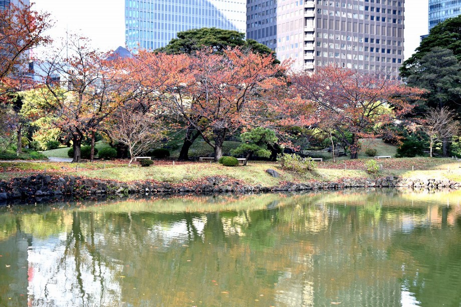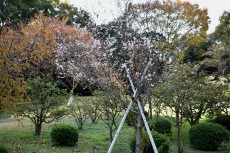 「一言」旧芝離宮に行きました。モミジの紅葉は始まったところという状況ですが、木々の葉が茶色に変わっていて陽射しに当たると 輝いていて秋の感じがしました。十月桜は満開できれいでした。モチツツジが白い花を付けていました。入り口の近くの桔梗が 一輪だけが咲いていました。旧芝離宮の横の公園の大きな木が黄葉して輝いていて綺麗でした。