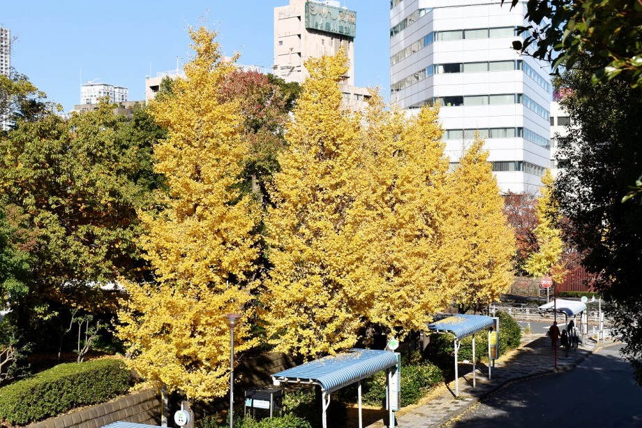 「一言」第一京浜のイチョウ並木のイチョウが黄葉してきました。品川のバス停のイチョウは見頃です。明治学園大学や高輪公園の 大きなイチョウも黄葉して輝いています。高輪プリンスホテルのイチョウやモミジも葉の色が変わり綺麗です。洞坂の入り口も 高輪館のモミジが紅葉しています。高輪消防署二本榎出張所の前の公園も紅葉しています。大楠公園の大きなクスノキは青々としています