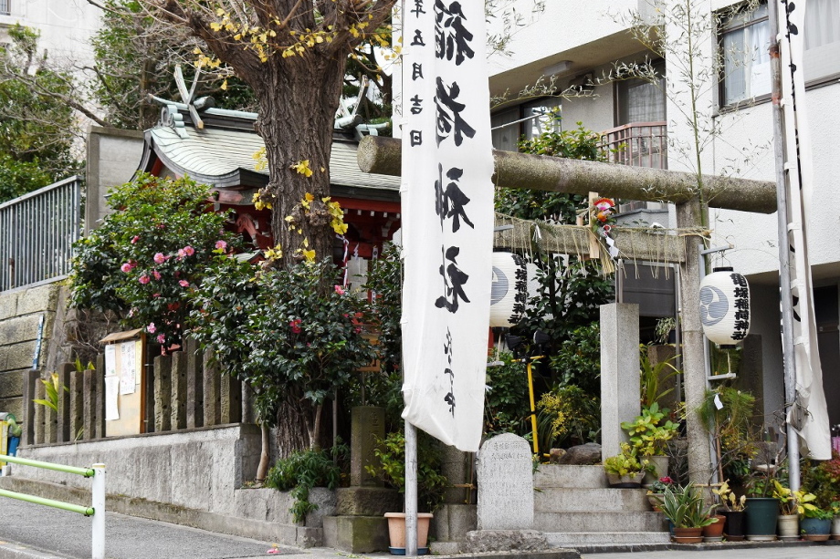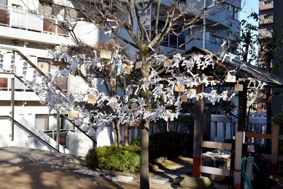 咲いていました。高輪神社には椿が咲いていましたが、おみくじを木にたくさん結んでいる風景に正月らしさを感じました。