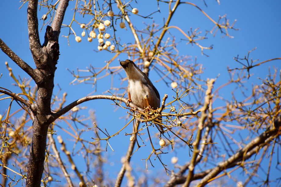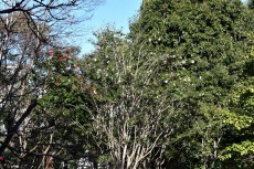三田台遊園には大きな木に白い実が実っていて鳥が食べていました。八芳園も花はありませんが松の緑が映えていました。どんぐり公園には花壇に色々な花が