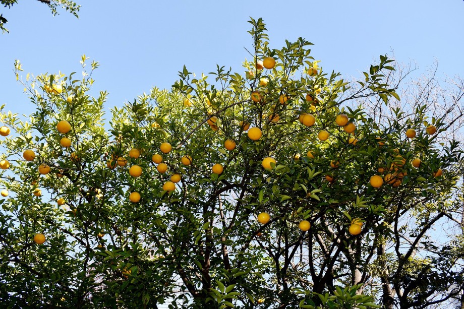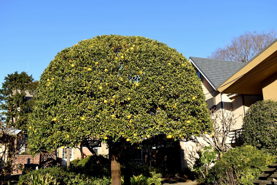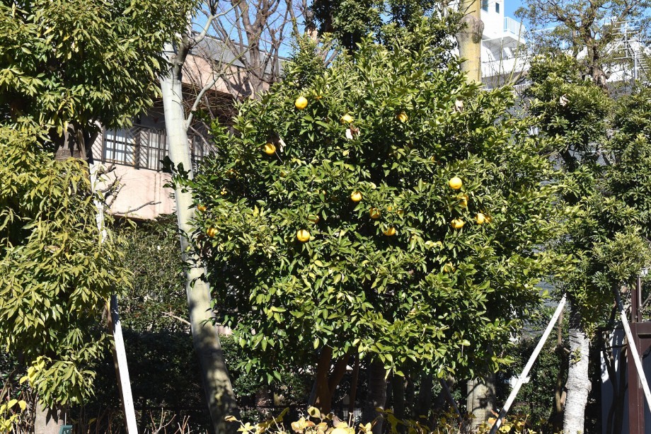 花も咲いていました。全体にお花は少なく、夏ミカンの大きな実があちこちに実っていました。玉鳳寺の色々なみかんを接木した木にはたくさんの実がなっています。