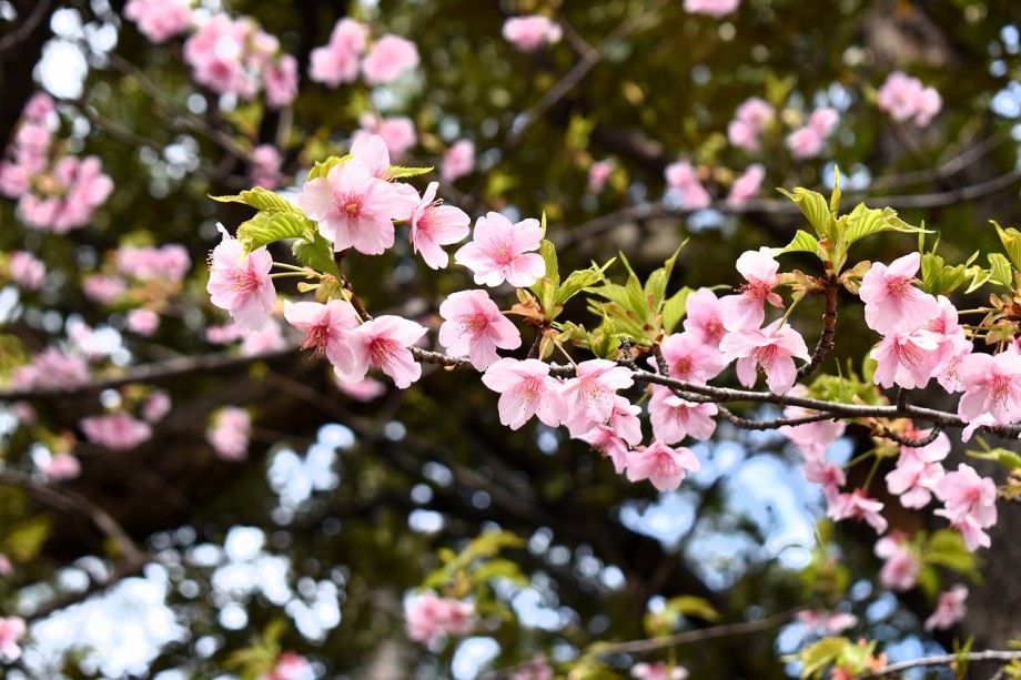 「一言」八芳園の河津桜が今年は早々と咲き出しました。2月18日には満開になり非常に綺麗でした。庭園の白梅も満開になりました。 今年は紅梅は既に散っていました。覚林寺の河津桜は12日にはまだ咲き始めという段階でしたが18日には見頃になっていました。