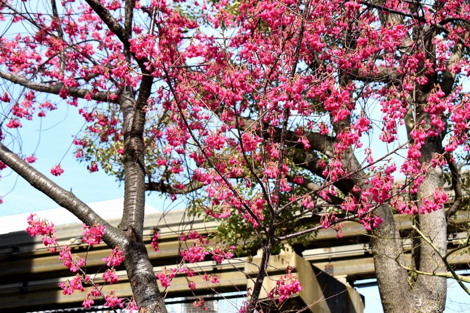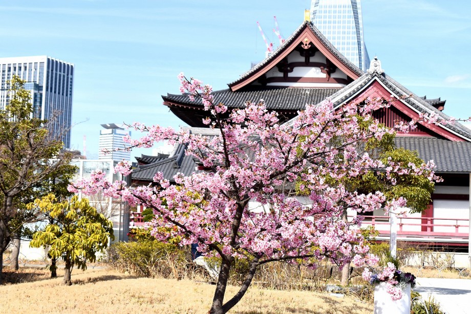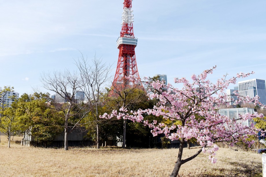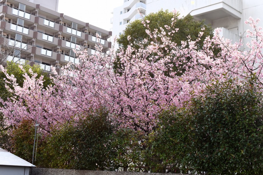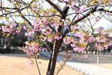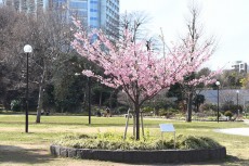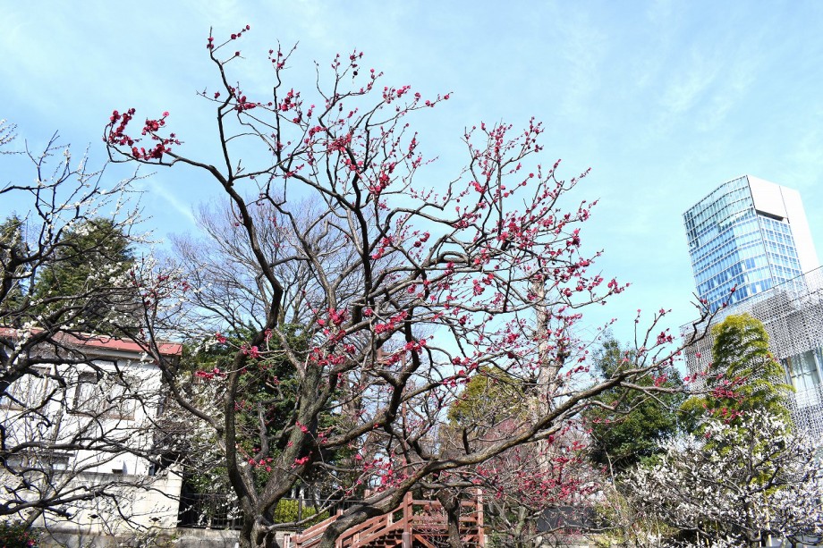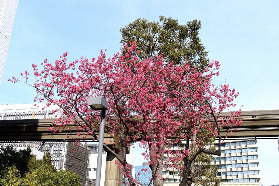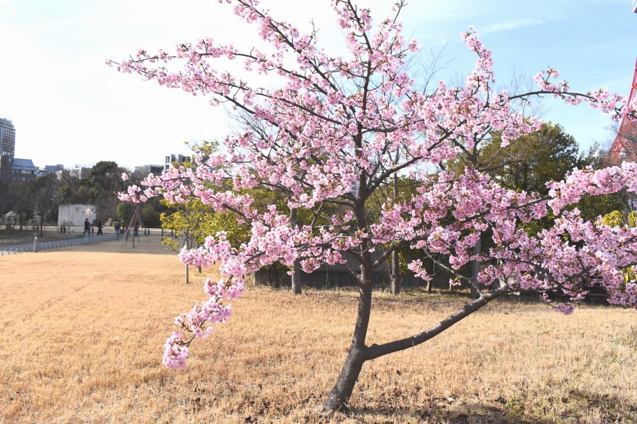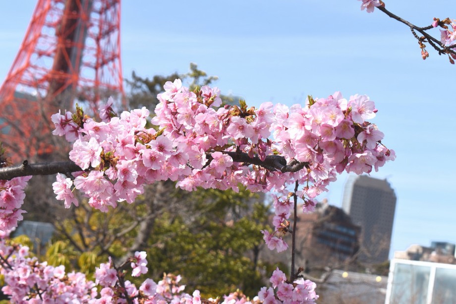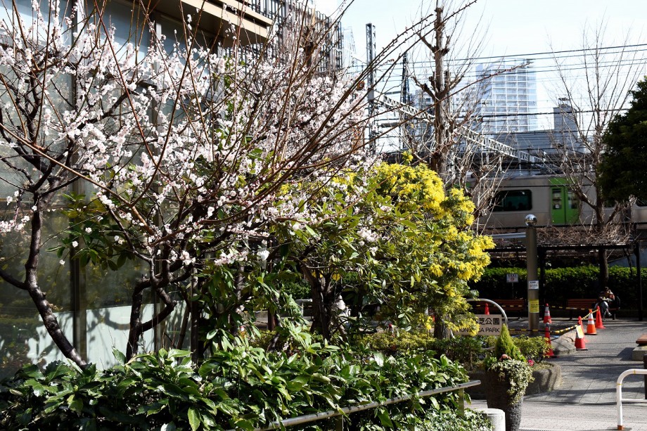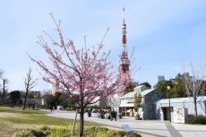 「一言」芝公園の梅林の梅は満開という感じです。芝公園の広場やプリンス芝公園には河津桜の花が満開になりました。 広場には菜の花も咲いていました。本芝公園の梅も花が咲いていました。老木ななので花の数は少ない感じです。 しばうら保育園には寒緋桜の真っ赤な花が咲いていました。寒緋桜の後ろにモノレールが走っていました。田町駅 の近くの学校には河津桜が咲いていました。