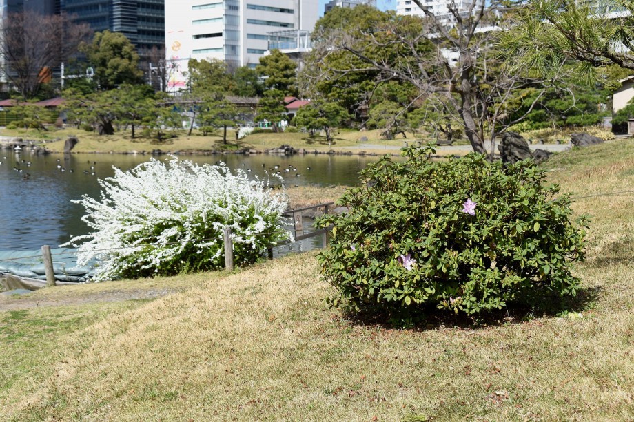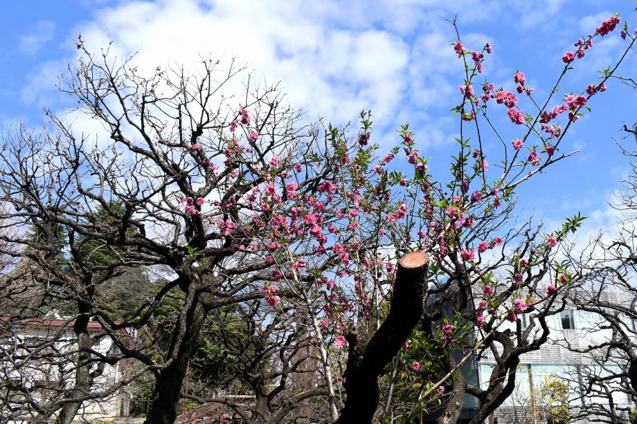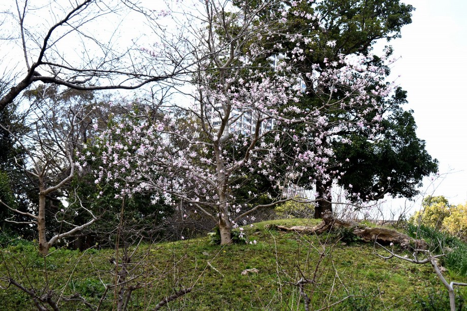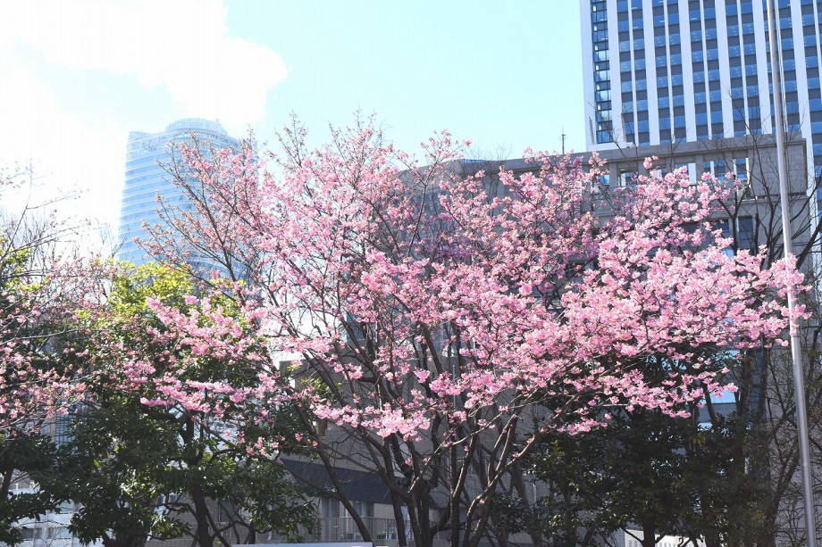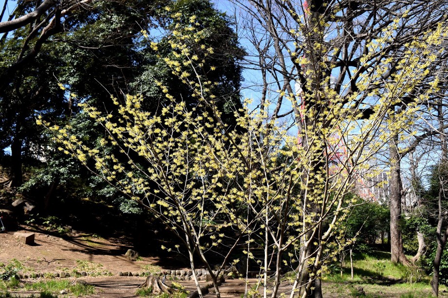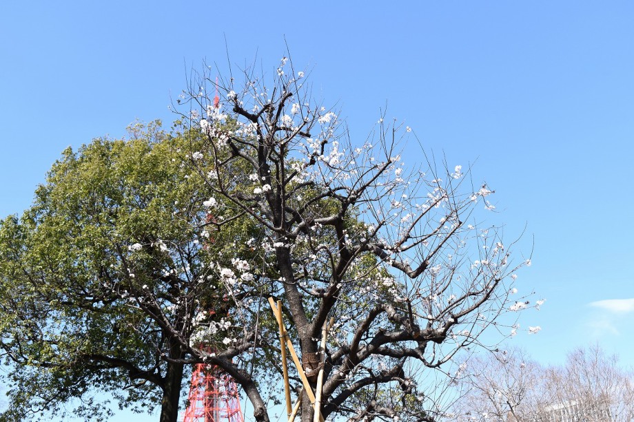 「一言」愛宕神社には陽光桜が咲いていました。大きな木が2�本ありますが、1本は見頃ですがもう一本はこれから咲くという感じです。 階段を下りる途中の早咲きの桜も満開です。芝公園にはあちこちにマンサクの黄色い可愛い花が咲いています。スモモの木も 可愛い花がたくさん咲いています。旧芝離宮はユキヤナギが見頃です。十月桜も咲いていました。コブシの大きな木も咲いていますが、 東芝ビルの日陰で上手く写真は撮れませんでした。