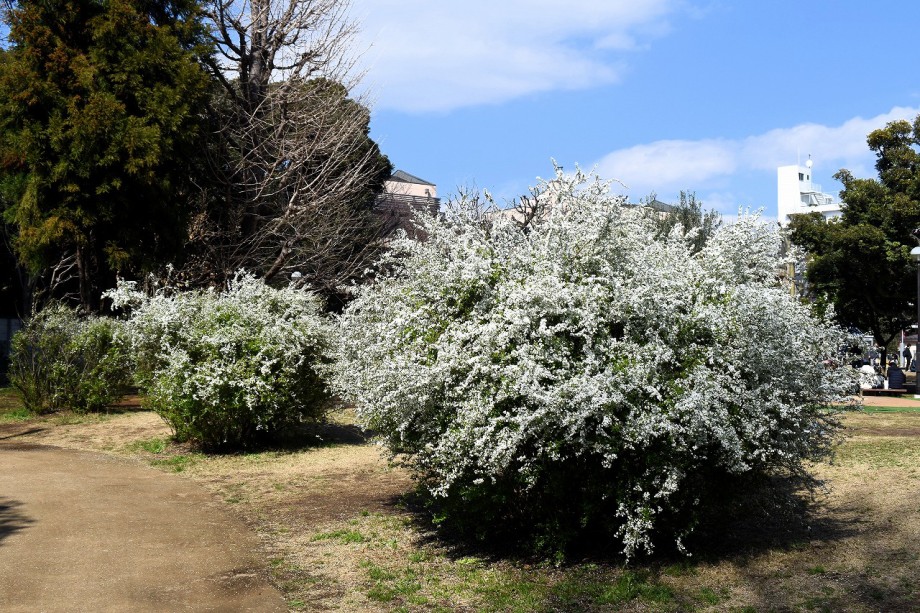 「一言」今日は天気が良くなったので、どんぐり児童遊園のユキヤナギを見に行きました。ユキヤナギは満開で迫力がありました。 ユキヤナギの横にはしだれ桜が咲き出していて綺麗でした。メジロが飛んできて花を啄んでいました。高輪プリンスホテル のハナモモも満開になり華やかでした。高輪公園のコブシも満開になりましたが、今年は木全体に花が咲くという状況でなく 少し残念でした。