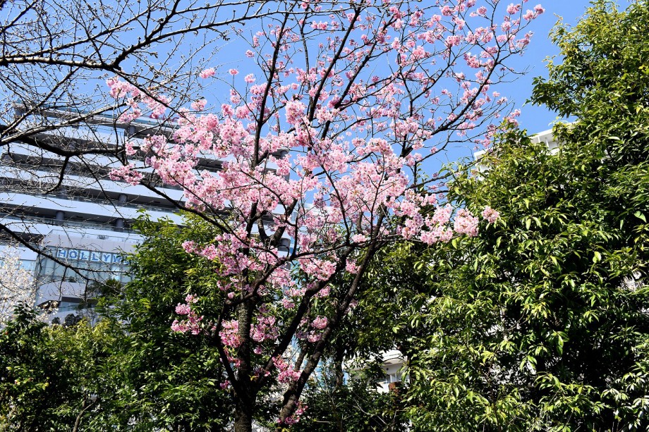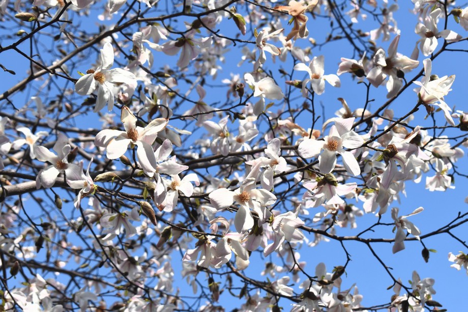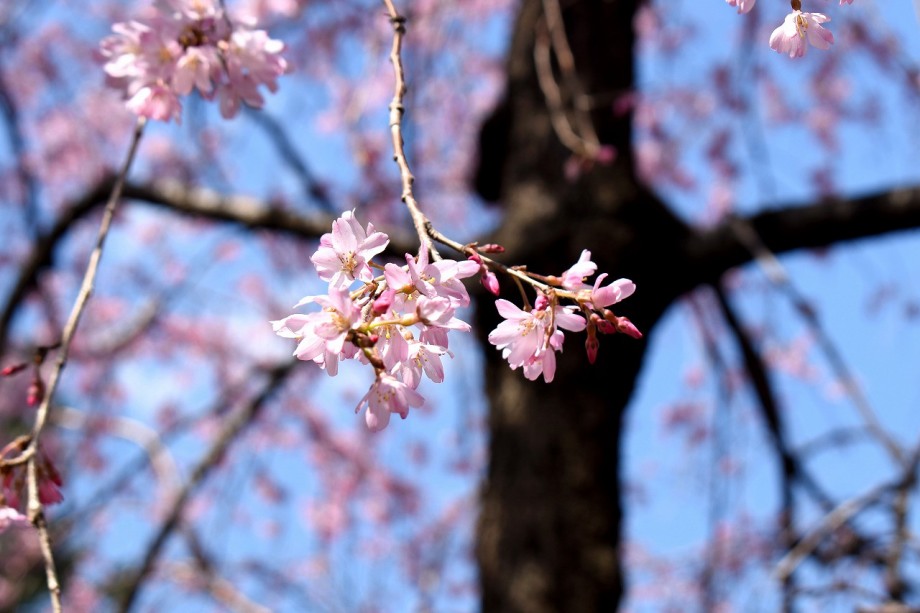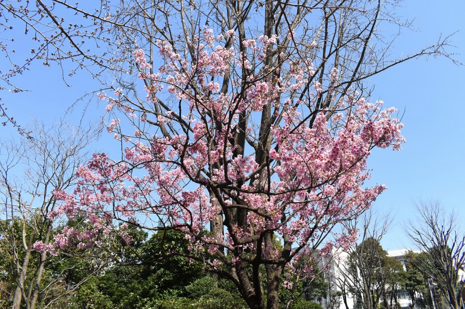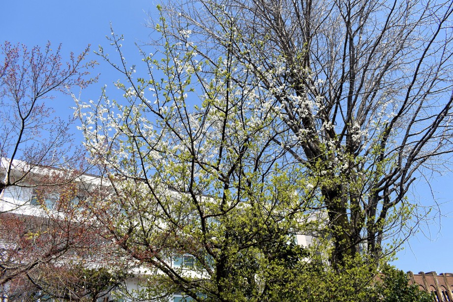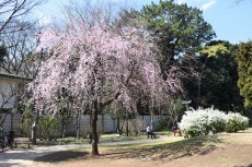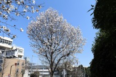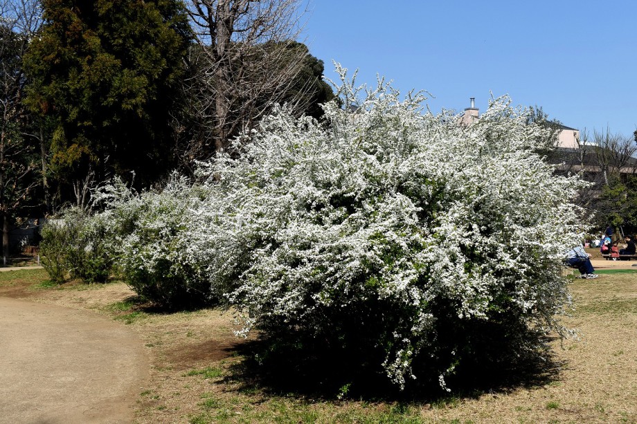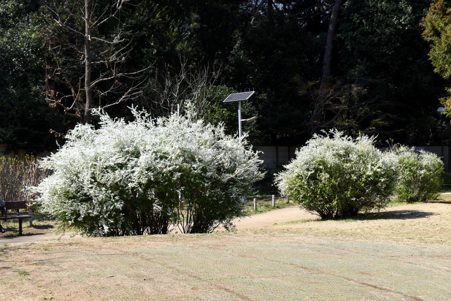 「一言」どんぐり児童遊園のユキヤナギが満開になり迫力があります。ユキヤナギの前のしだれ桜が見頃になりました。医科研にも色々な花が 咲き出しました。都ホテルの駐車場には大きな木に白い花が咲いています。蜀江坂の途中には桃の花が満開です。毛利庭園にも陽光桜 が満開です。庭園は工事中ですのでは入れませんが、毛利庭園の横にはコブシの並木があり、白い花がいっぱい咲いています。