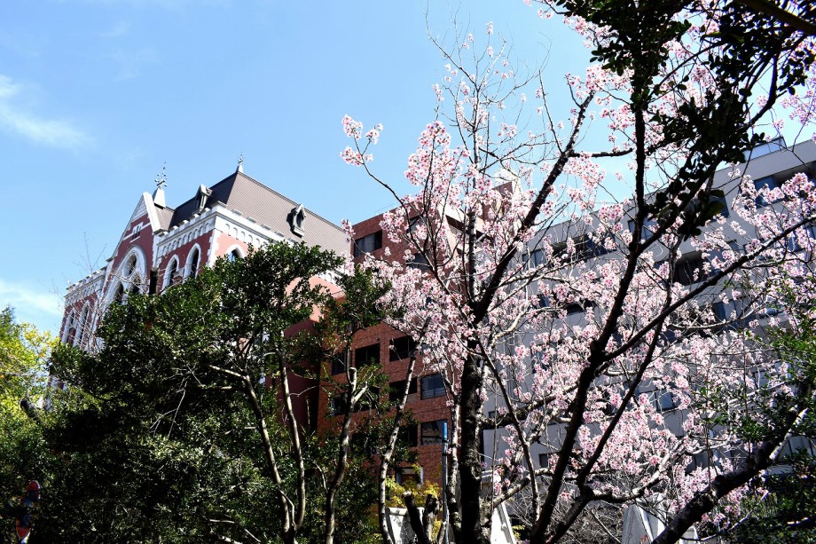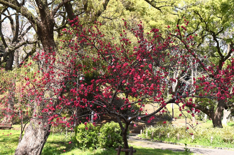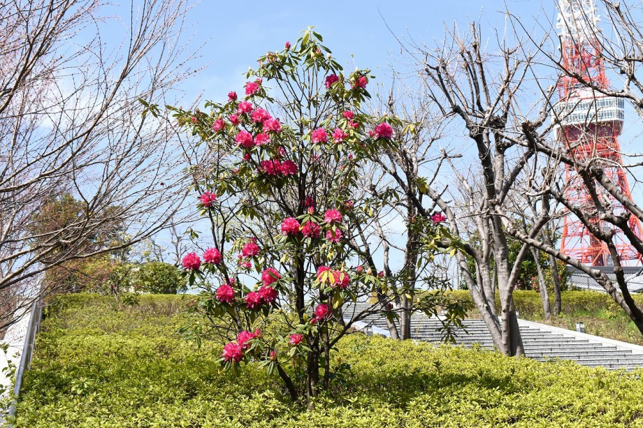 「一言」芝公園の梅林にはハナモモの花が咲き出しました。芝東照宮にも本殿の横に桜が咲いています。芝公園の広場には まだマンサクが咲いています。プリンス芝公園に上がるところには石楠花が咲いています。図書館の近くには里桜が 咲いています。ツツジも咲き出しました。愛宕トンネルの近くの桜は早々と満開になりました。慶応大学にも桜が咲いています。