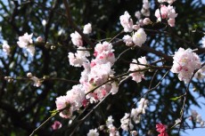「一言」安全寺坂に里桜が咲き出しました。大松寺にも赤いハナモモ花が咲きました。春日神社にも桜の花が咲きました。