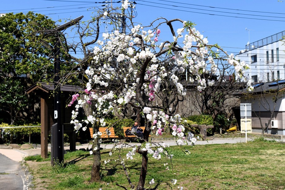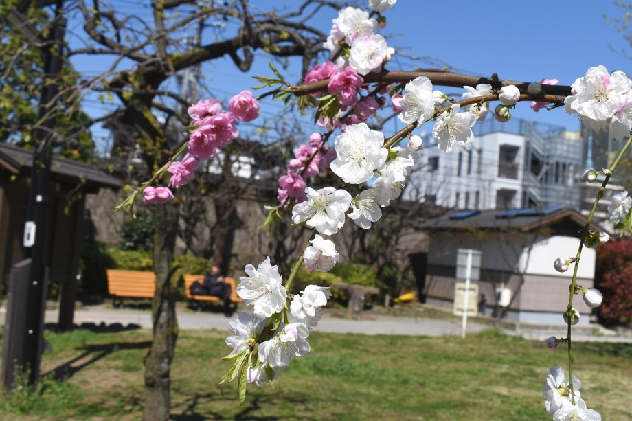 證誠寺や龍源寺、亀塚公園、三田台児童遊園などに桜やハナモモが咲いています。薬王寺にはしだれ桜が咲いています。