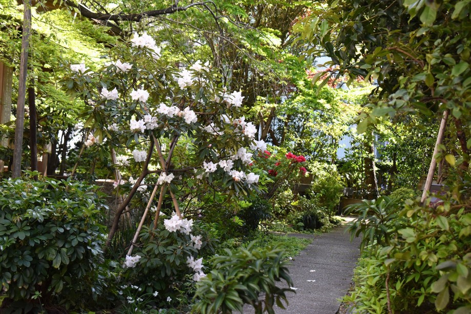 「一言」亀塚ら公園から三田台児童遊園にかけて花水木の花が咲いています。三田台児童遊園にはコデマリが咲き、 チャンチンの葉が赤くなってきました。正山寺のお堂の横のモッコウバラも見頃です。白いイチハツも咲いています。 薬王寺には花水木やハナモモ、藤の花は咲き、ハナモミジが紅葉して綺麗です。龍源寺の石楠花が咲き、真っ赤な 牡丹もも咲いています。色々な可愛いらし花も咲いています。