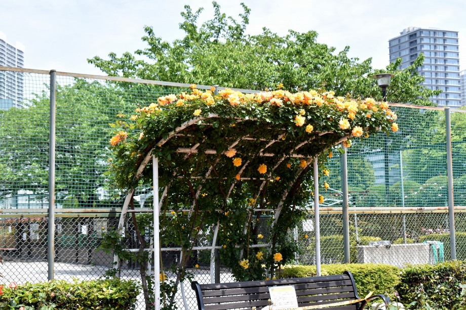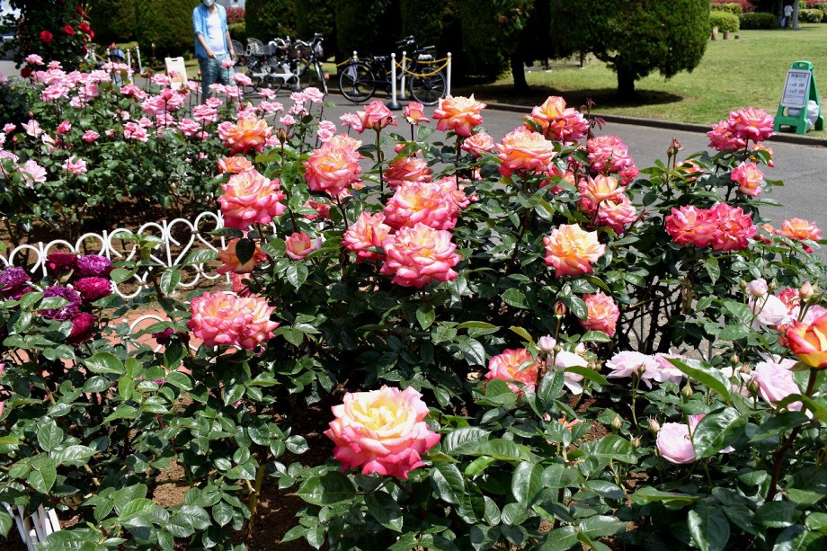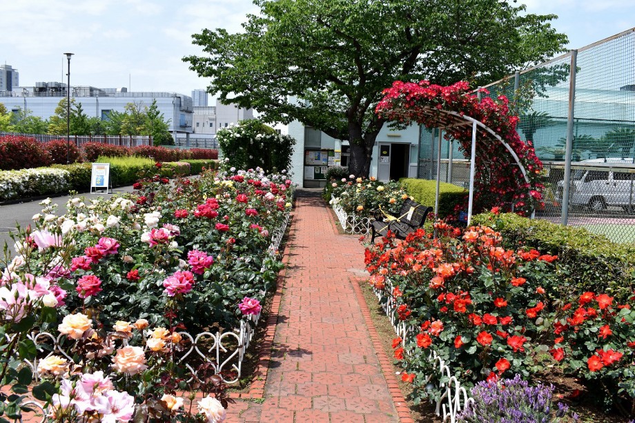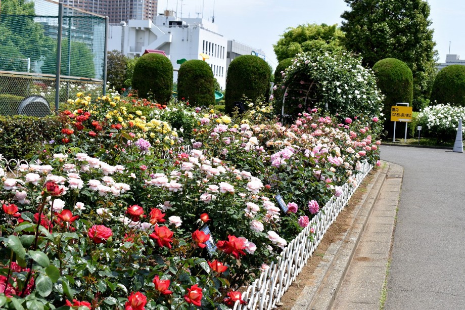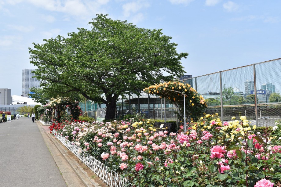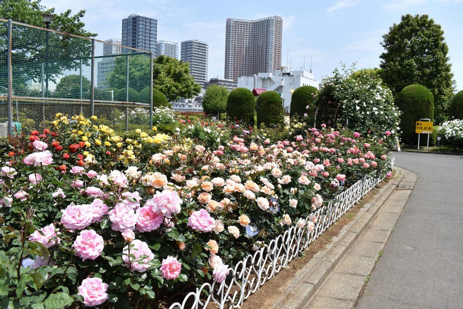「一言」芝浦中央公園のバラが非常に綺麗になりました。先週に比べてバラの花の数が非常にたくさん増えて咲いています。 バラ園を手入れをしている人も今年はたくさん咲いたと話していました。色々な種類のバラがあり、華やかです。